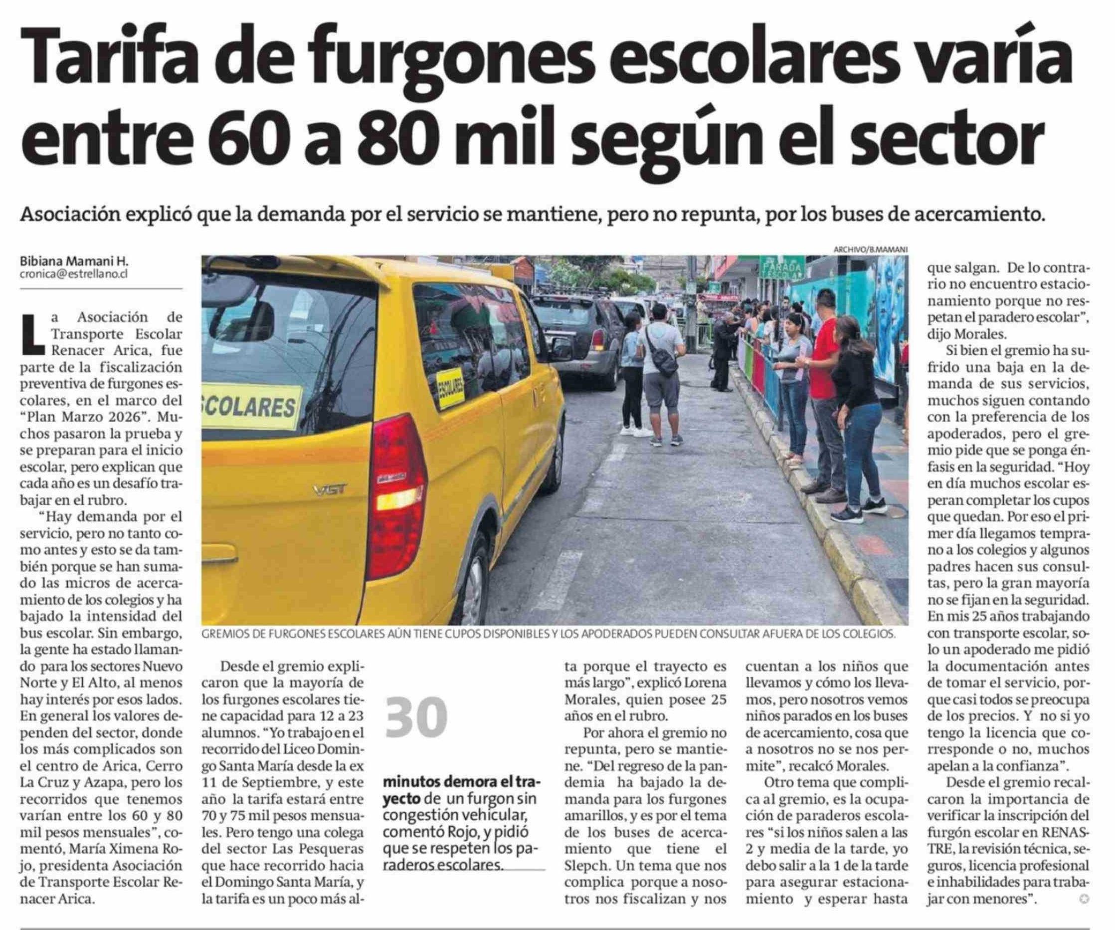 Título: Tarifa de furgones escolares varía entre 60 a 80 mil según el sector