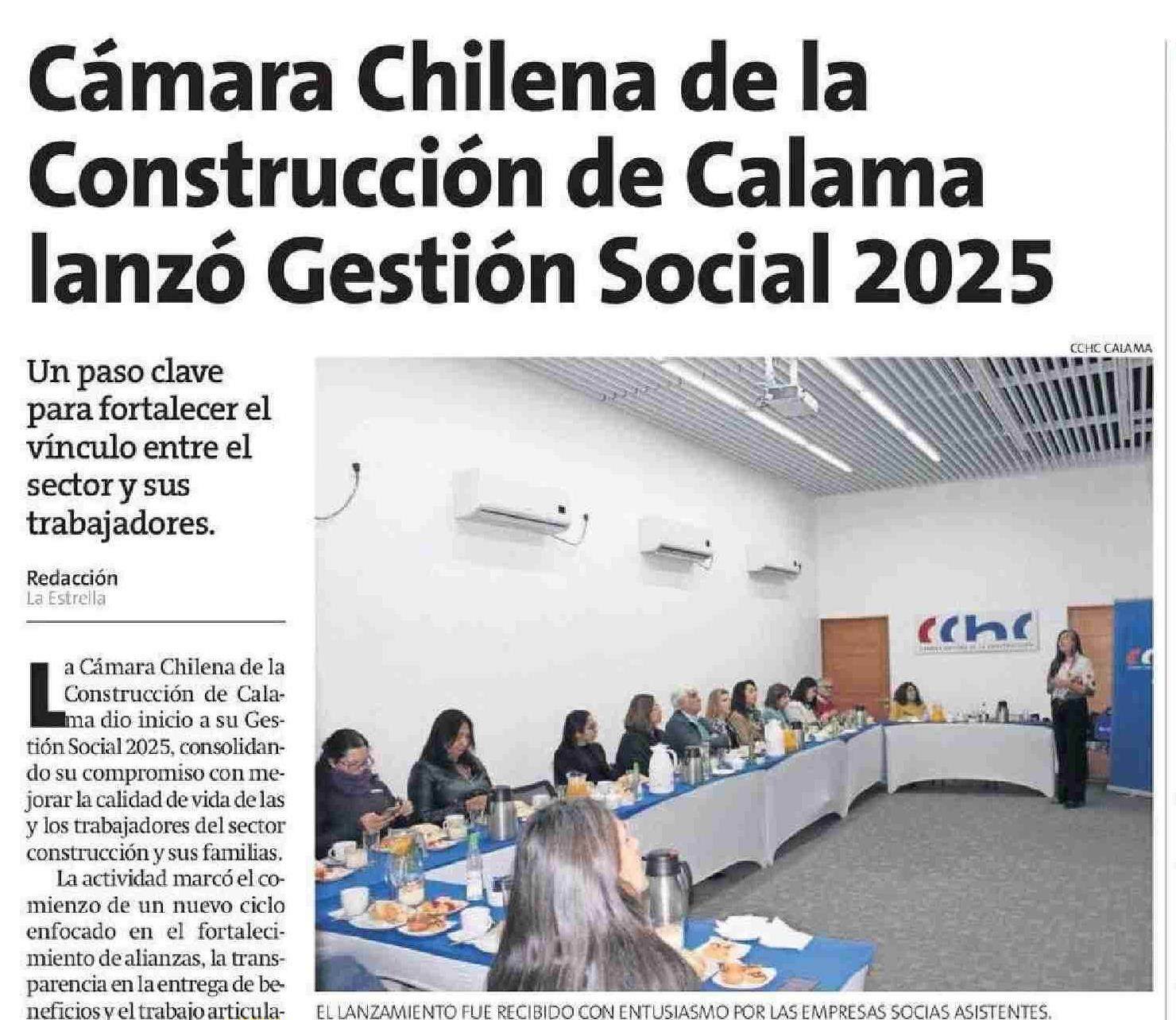 Cámara Chilena de la Construcción de Calama lanzó Gestión Social 2025 04-06-2025 La Estrella de Antofagasta |