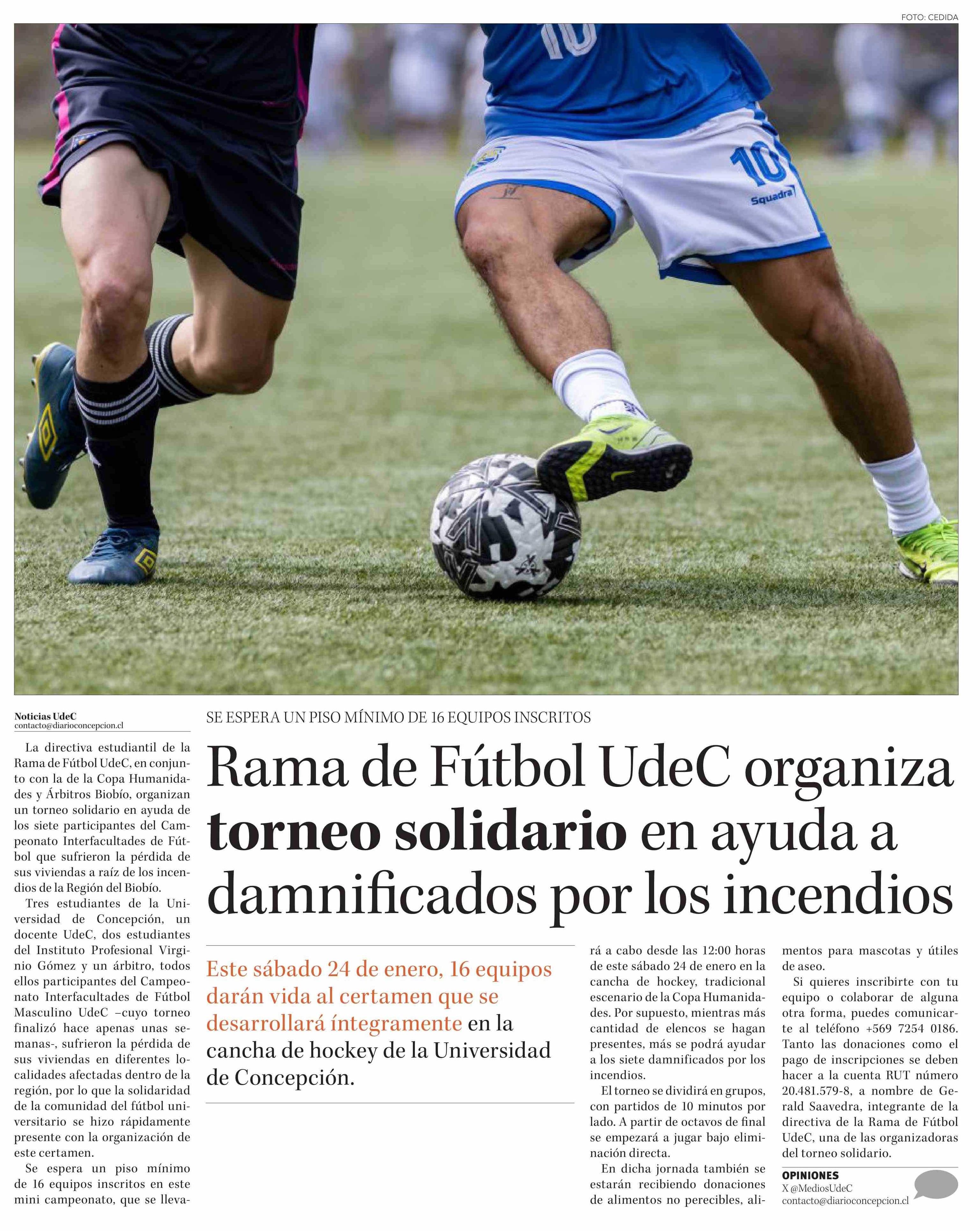 Título: Rama de Fútbol UdeC organiza torneo solidario en ayuda a damnificados por los incendios
