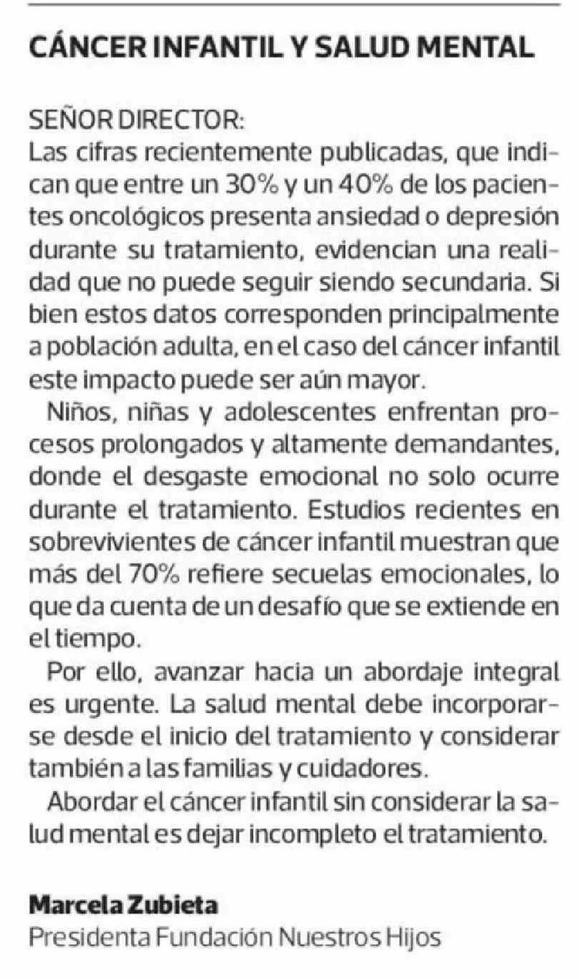 Cartas: CÁNCER INFANTIL Y SALUD MENTAL