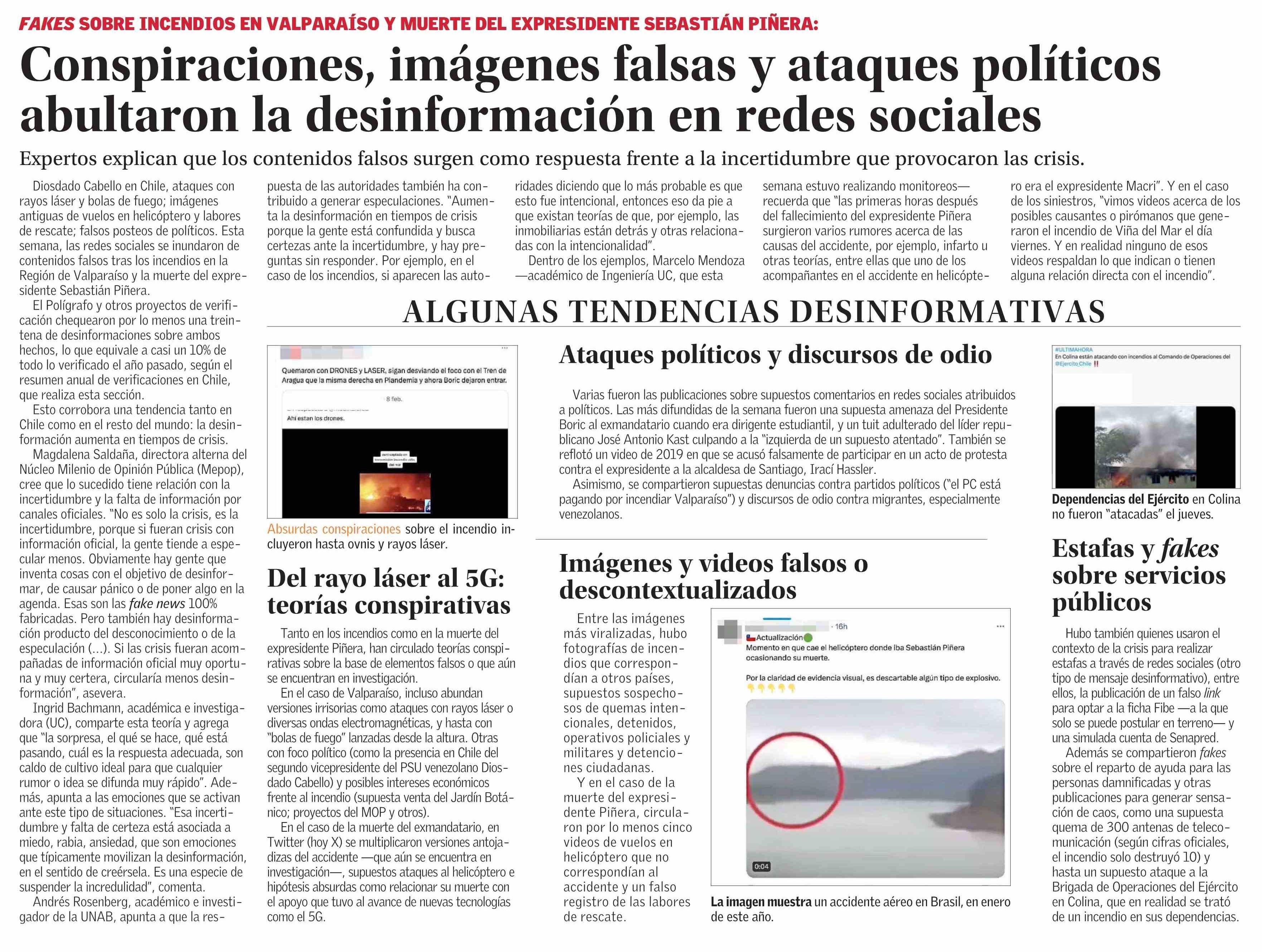 Conspiraciones, imágenes falsas y ataques políticos abultaron la desinformación en redes sociales 11-02-2024 El Mercurio |