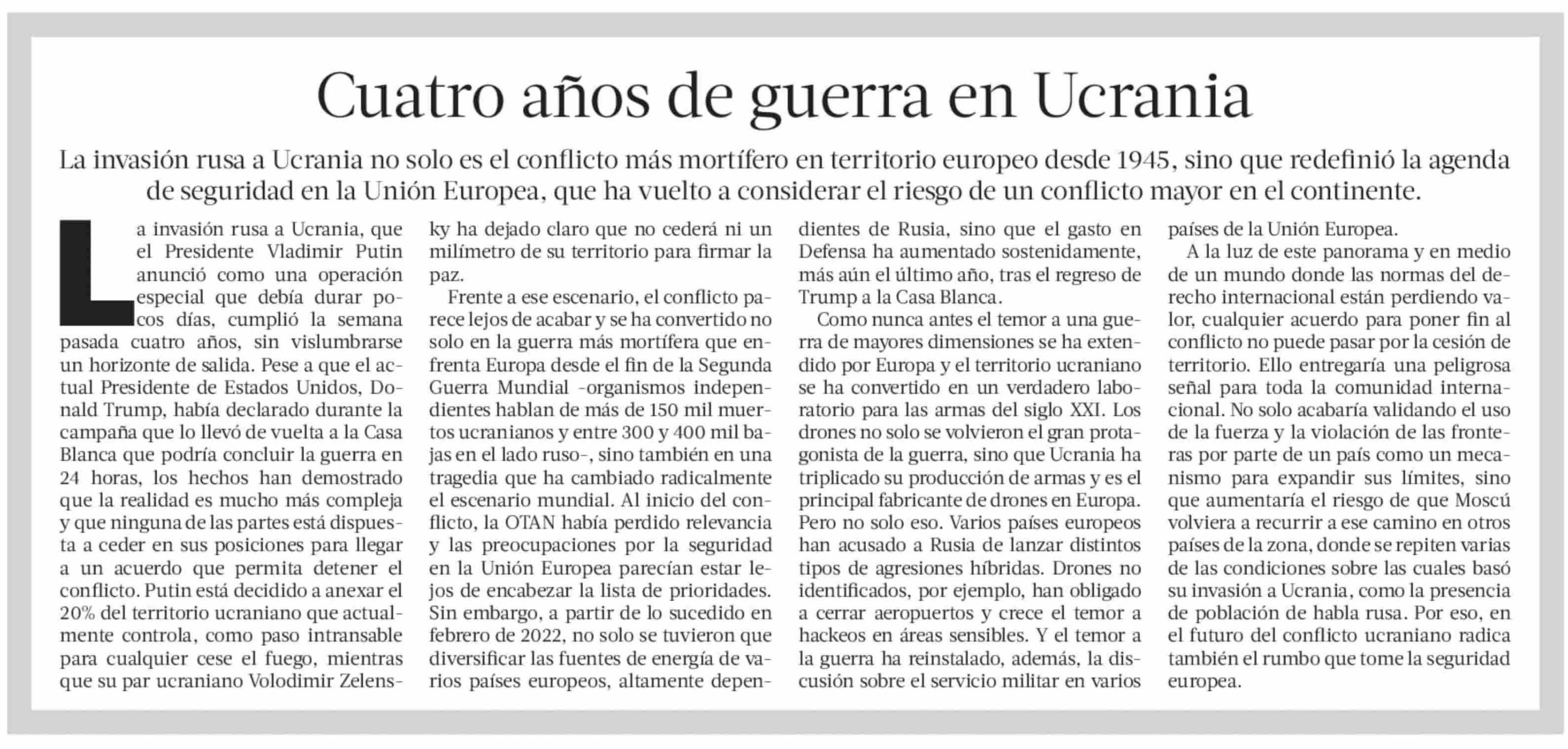 Título: EDITORIAL: Cuatro años de guerra en Ucrania