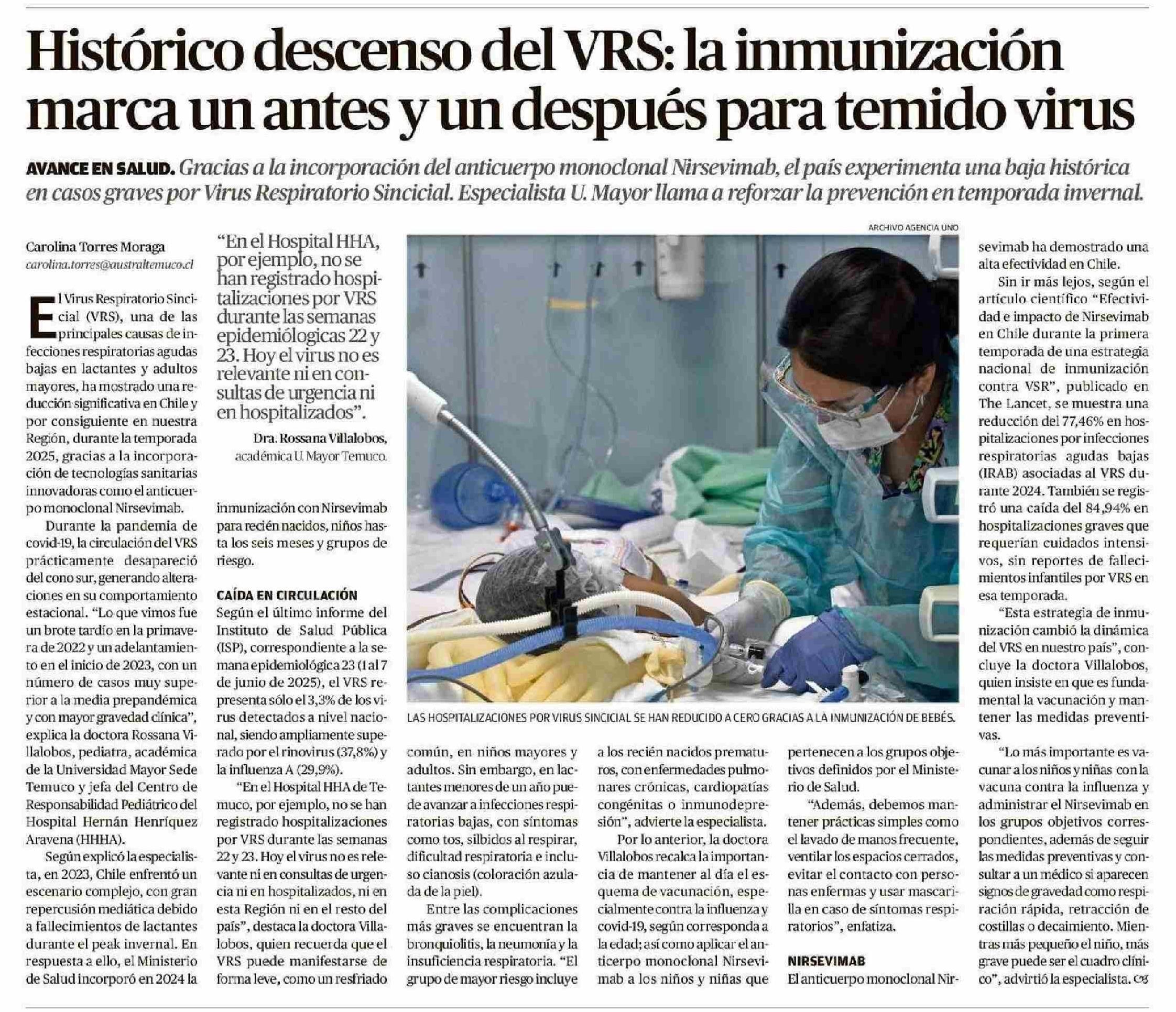 Histórico descenso del VRS: la inmunización marca un antes y un después para temido virus 18-06-2025 El Austral de la Araucanía |