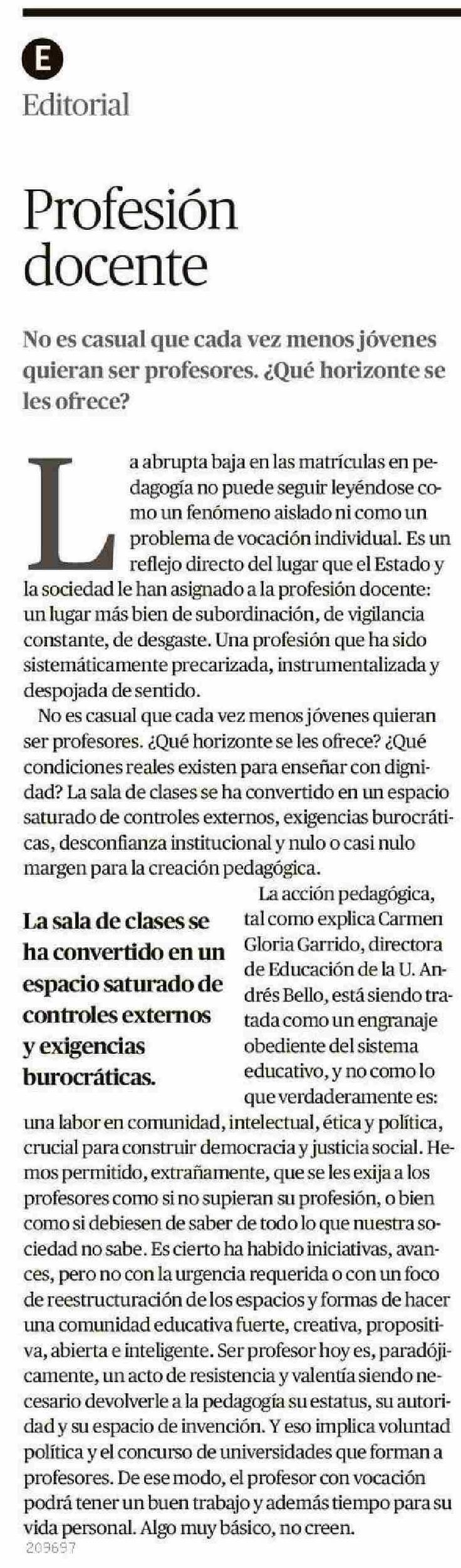 Editorial: Profesión docente 25-04-2025 Crónica de Chillán |