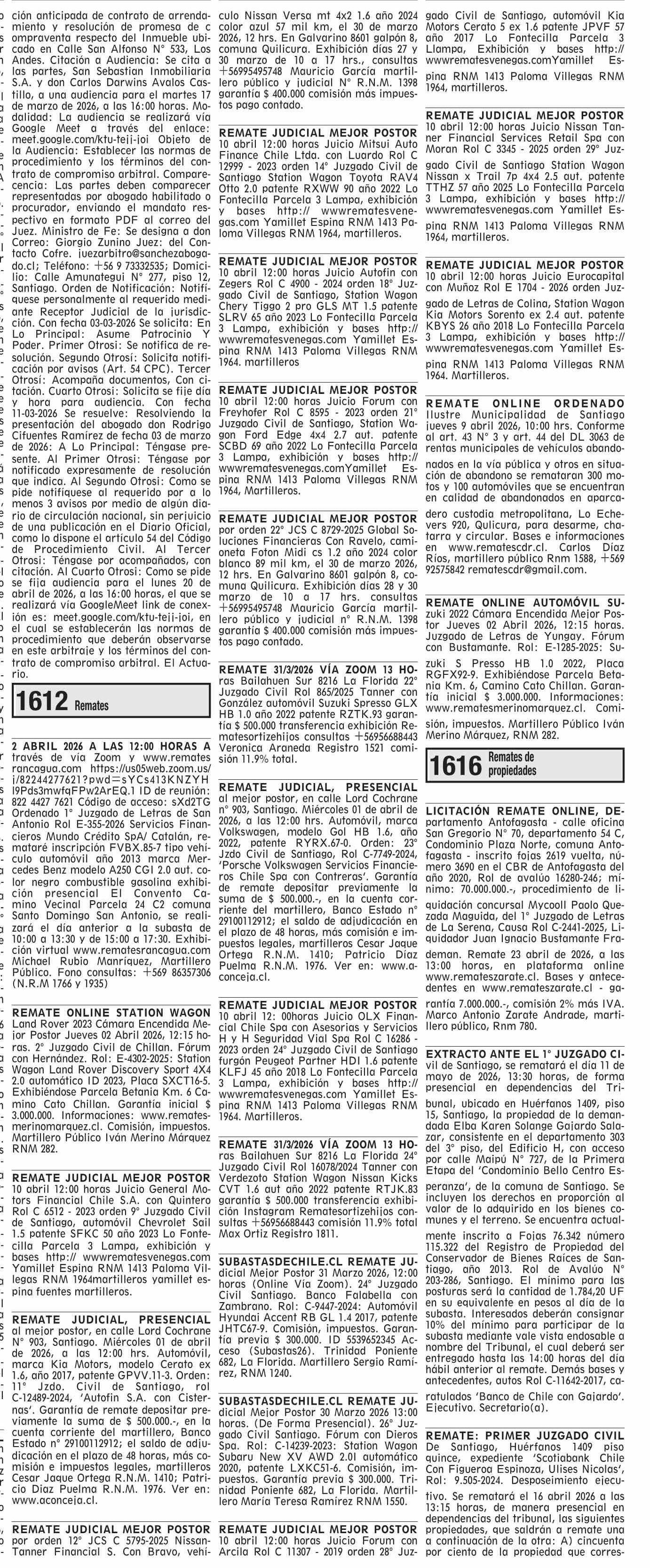 | Fecha: | 29-03-2026 | Sector: | Remates | Región: | Región Metropolitana de Santiago |