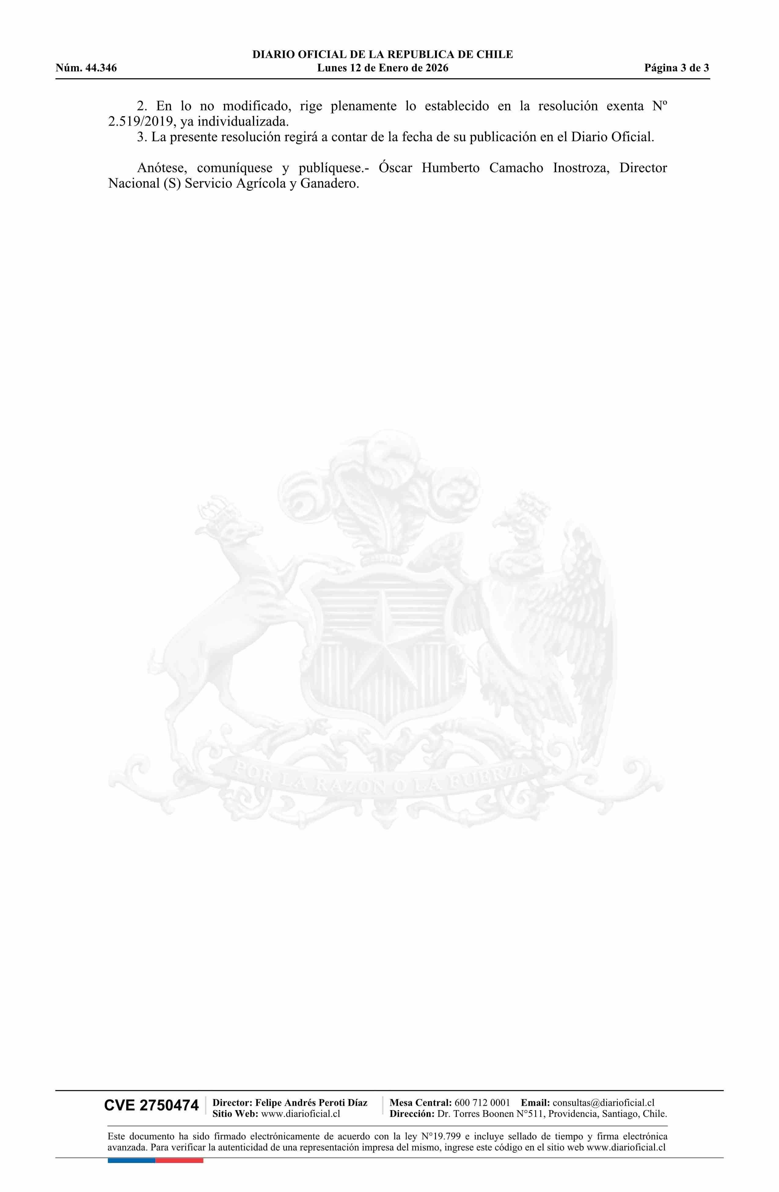 Resolución exenta número 11.136, de 2025.- Modifica resolución exenta N° 2.519/2019 que crea el Sistema Nacional de Control Predial para Establecimientos Pecuarios