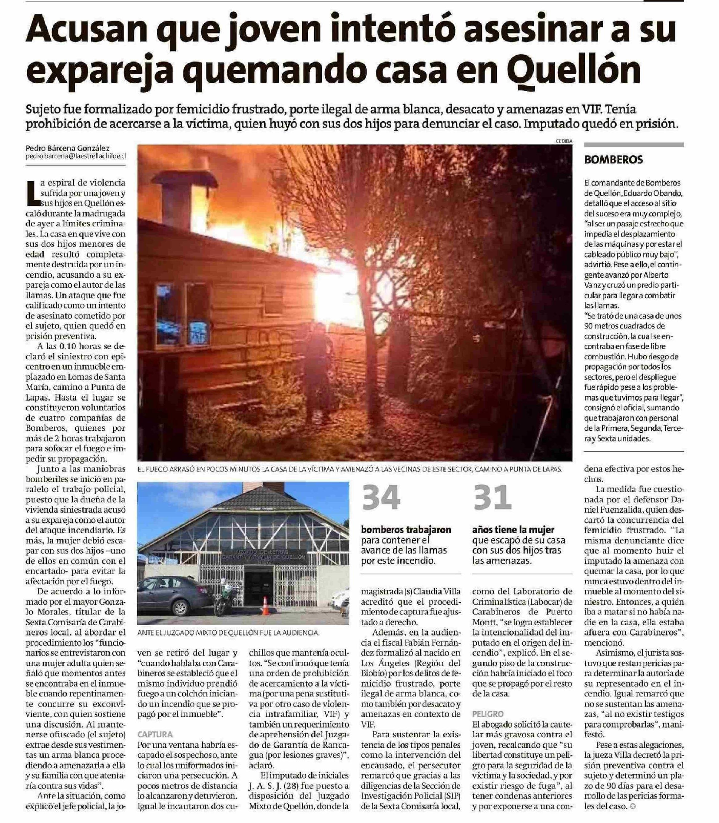 | Título: | Acusan que joven intentó asesinar a su expareja quemando casa en Quellón |