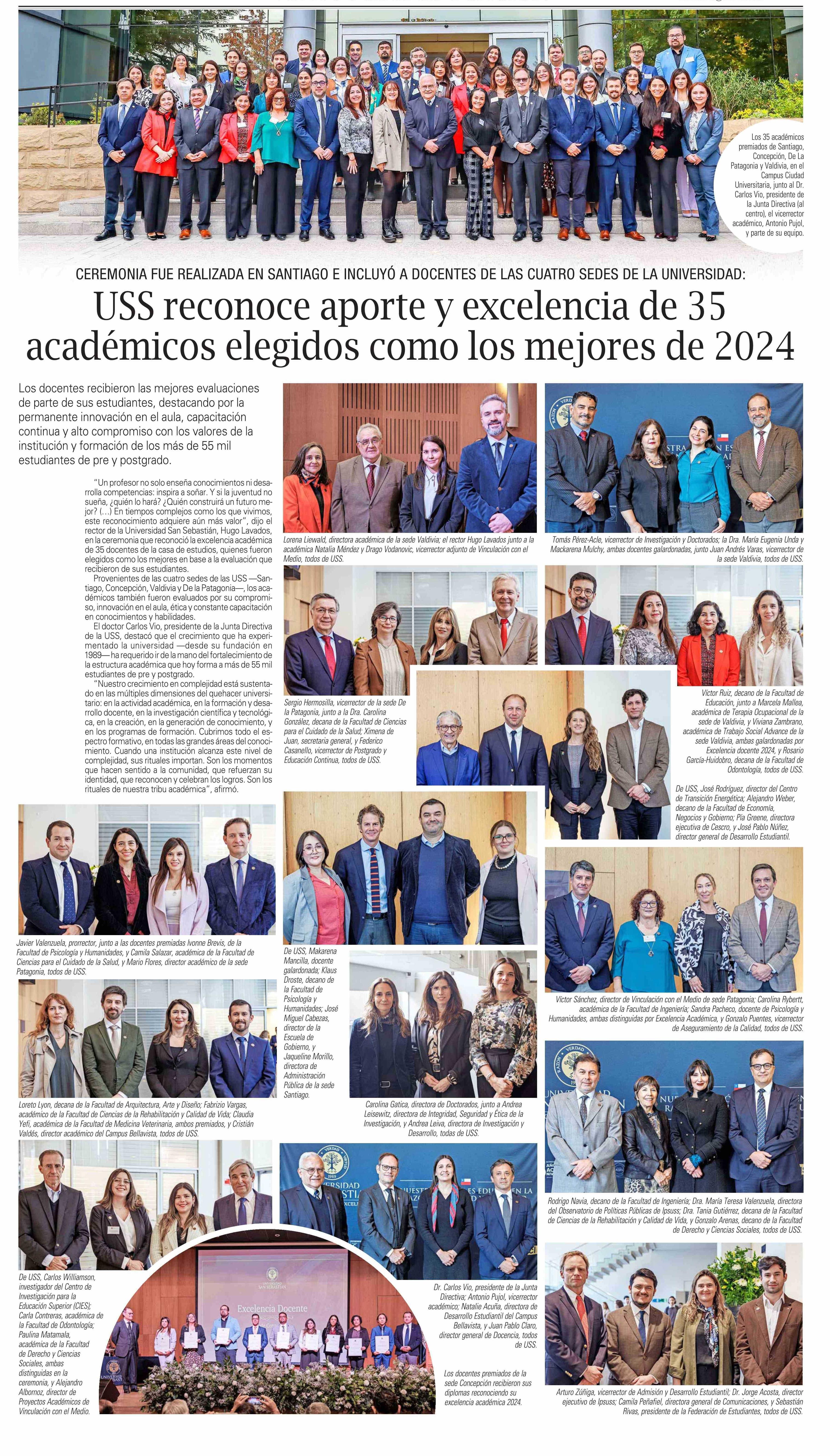 USS reconoce aporte y excelencia de 35 académicos elegidos como los mejores de 2024 04-05-2025 El Mercurio |