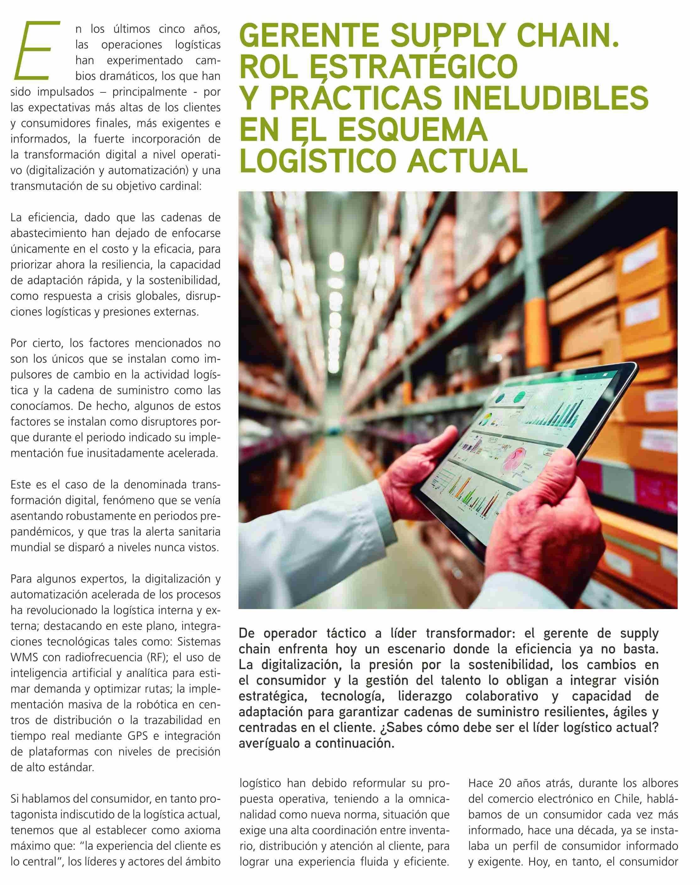 GERENTE SUPPLY CHAIN. ROL ESTRATEGICO Y PRACTICAS INELUDIBLES EN EL ESQUEMA LOGISTICO ACTUAL 17-06-2025 Revista Logistec |