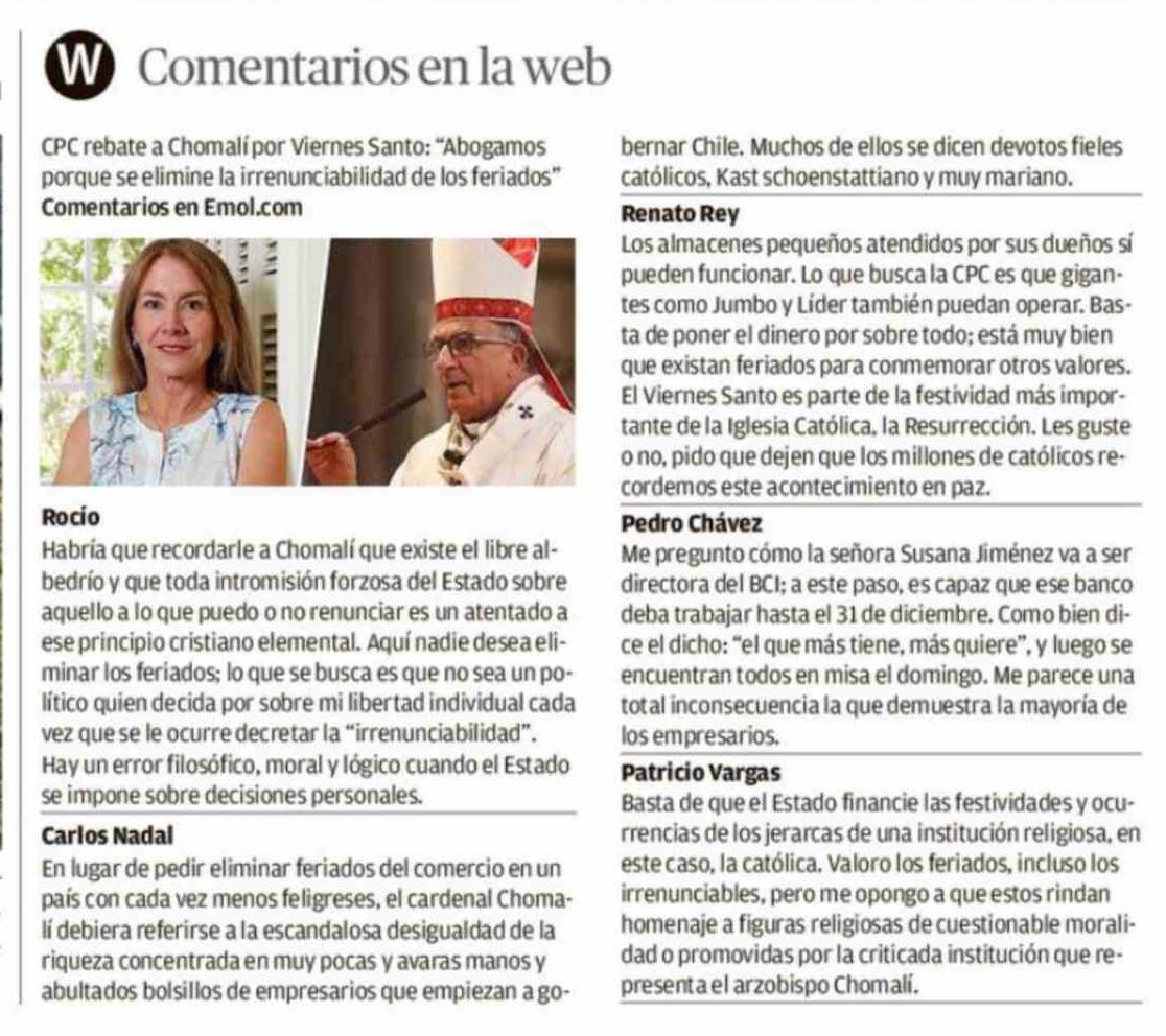Comentarios en la web 19-03-2026 El Llanquihue |