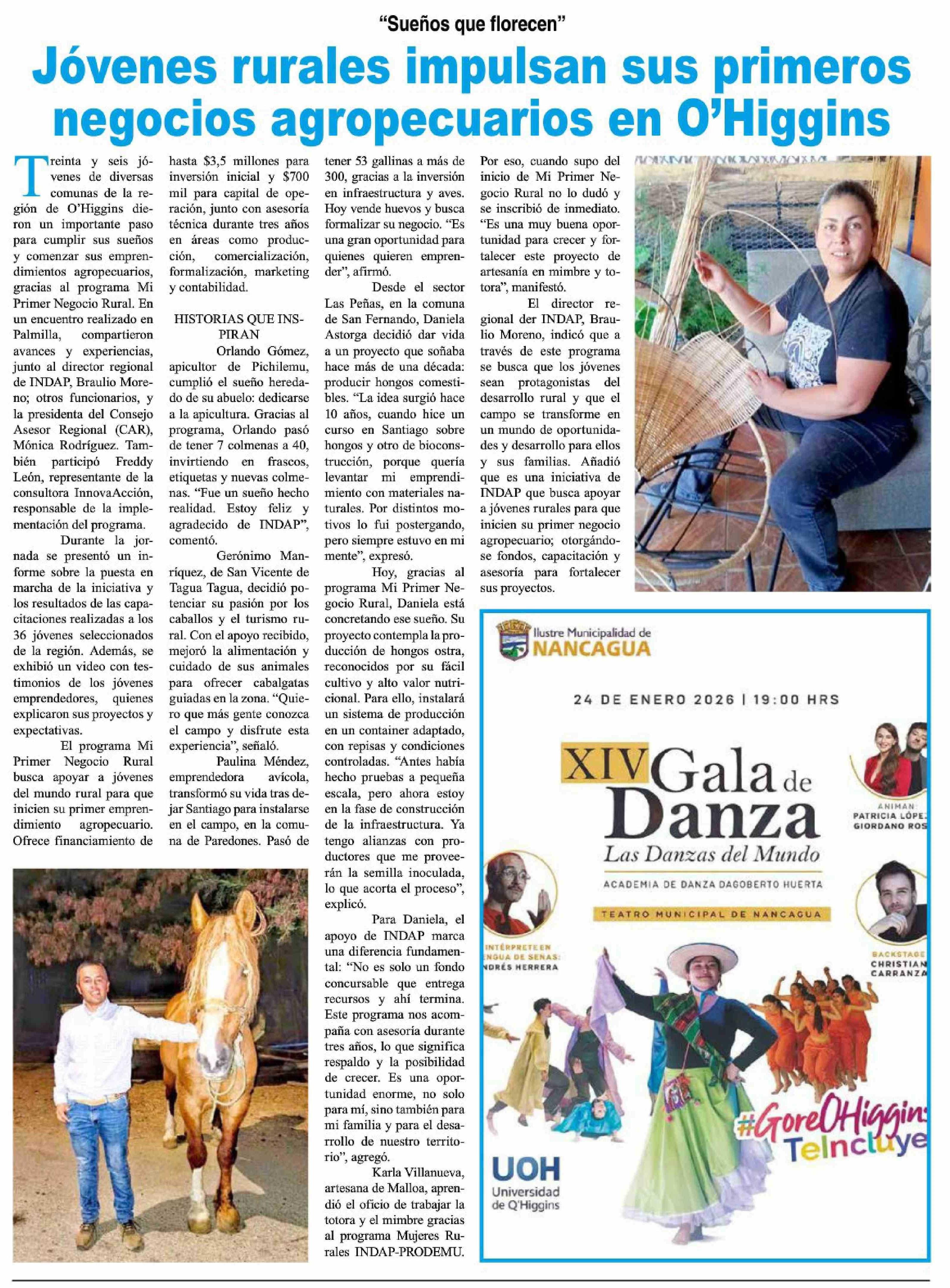 Jóvenes rurales impulsan sus primeros negocios agropecuarios en O'Higgins 14-01-2026 Diario VI Región |