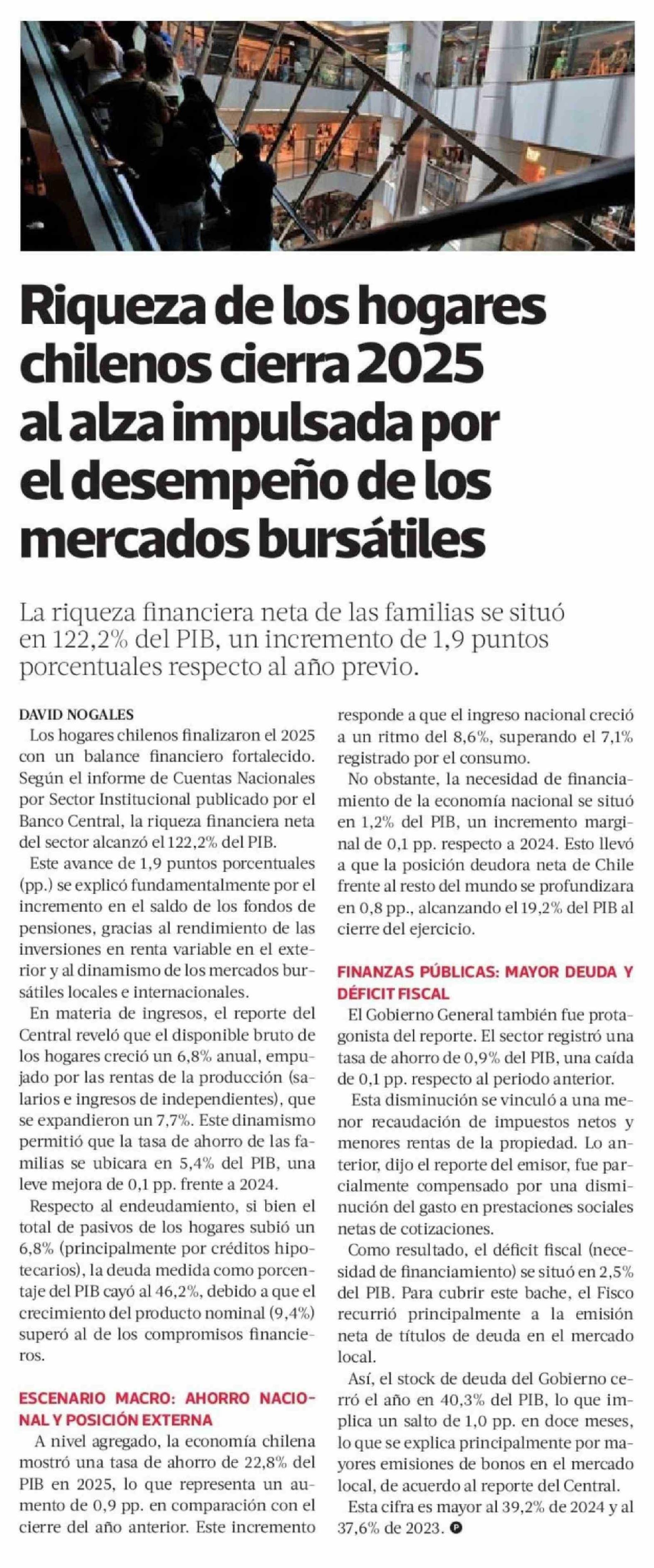 Título: Riqueza de los hogares chilenos cierra 2025 al alza impulsada por el desempeño de los mercados bursátiles