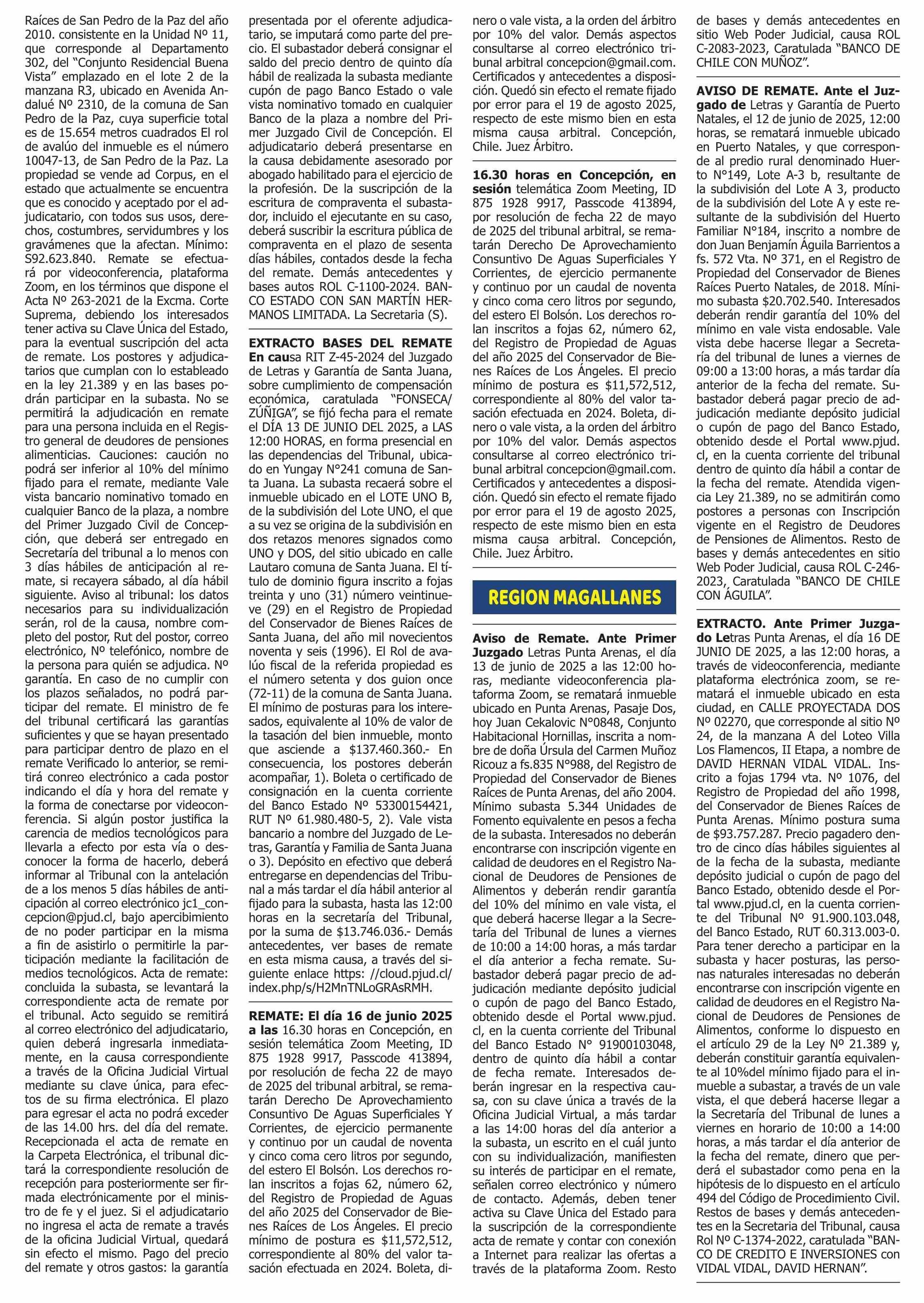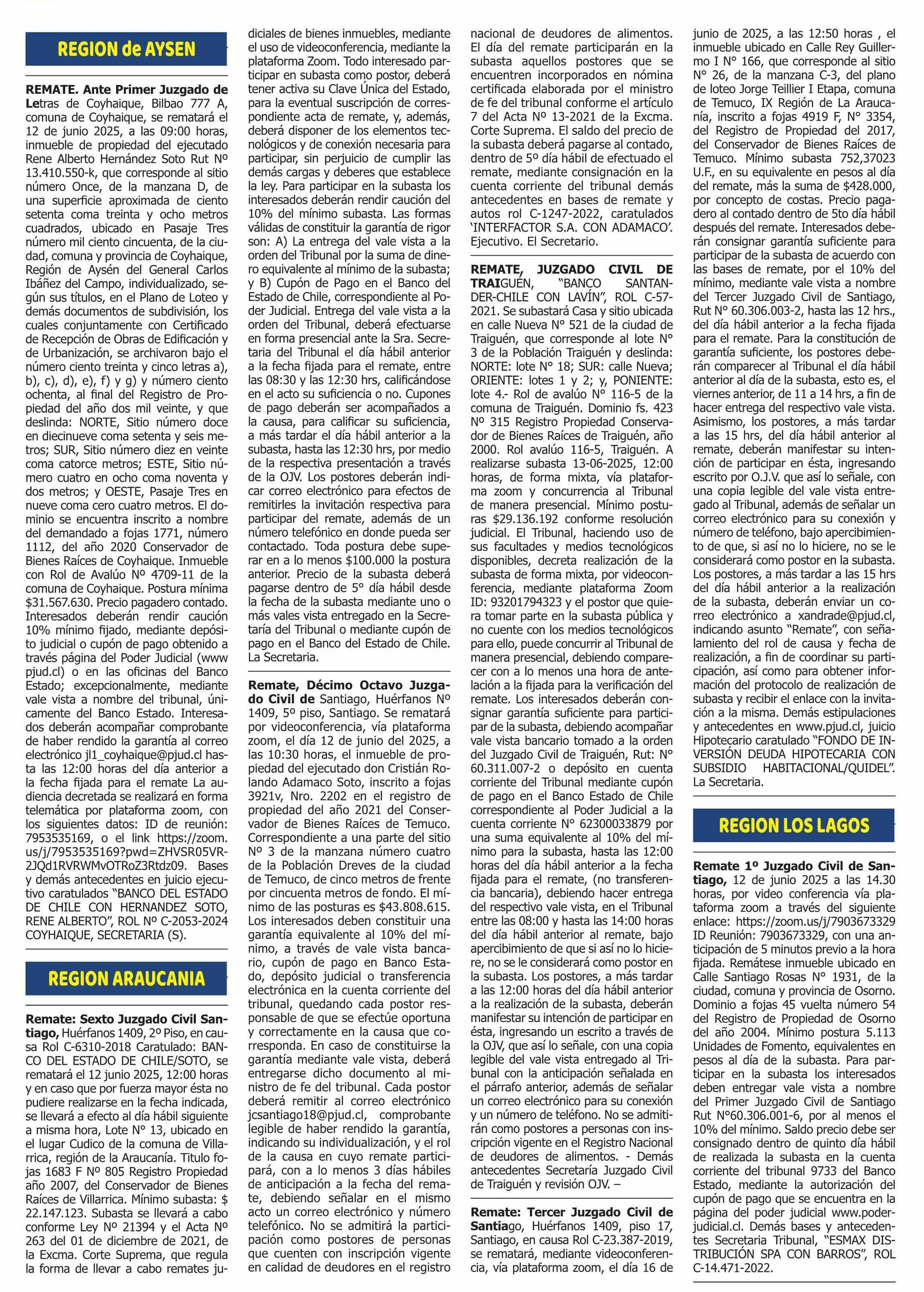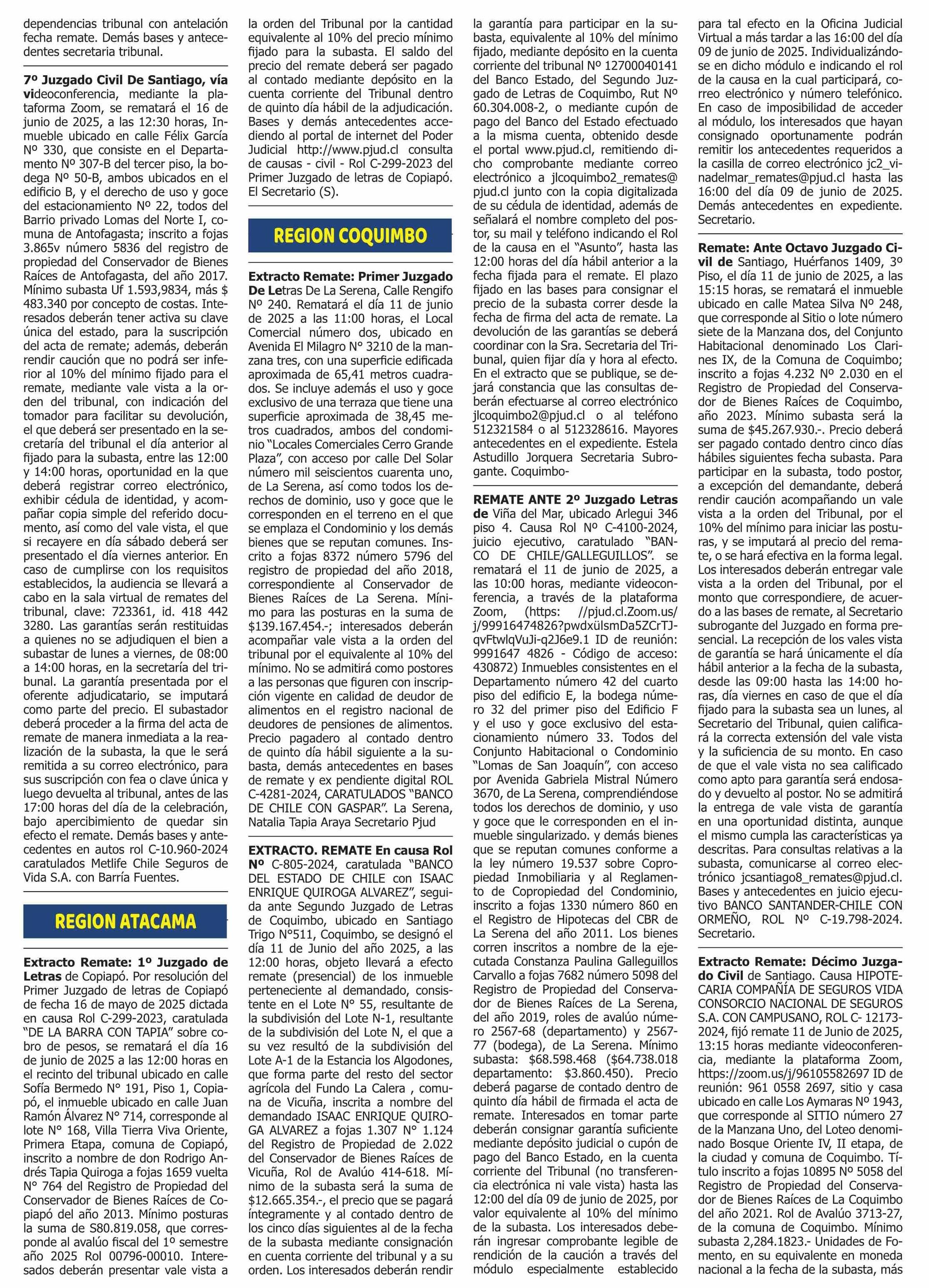 REMATES: REMATES de PROPIEDADES (Ordenados Por Regiones 08-06-2025 P&L Públicos y Legales |