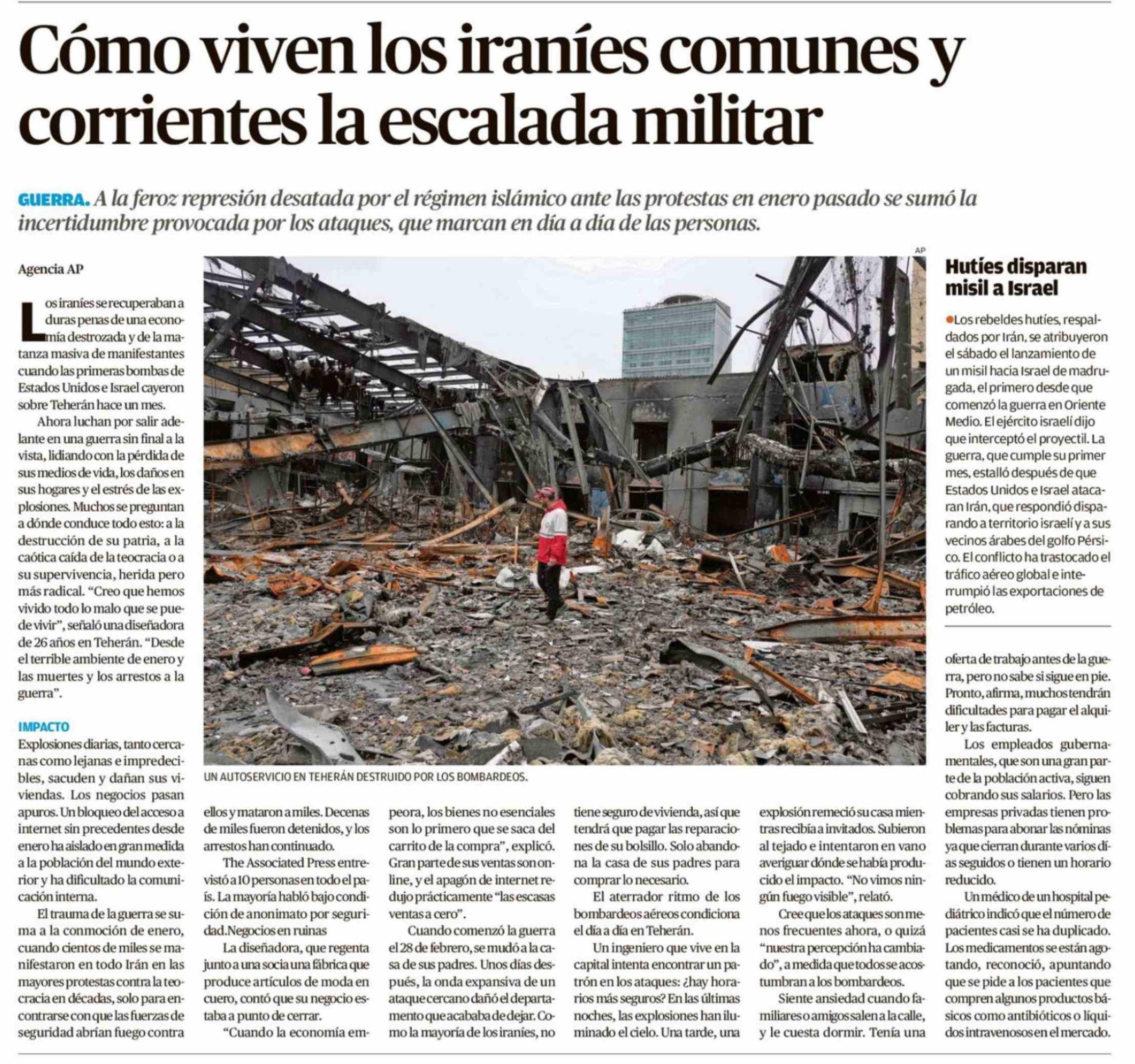 Cómo viven los iraníes comunes y corrientes la escalada militar 29-03-2026 El Austral de Osorno |