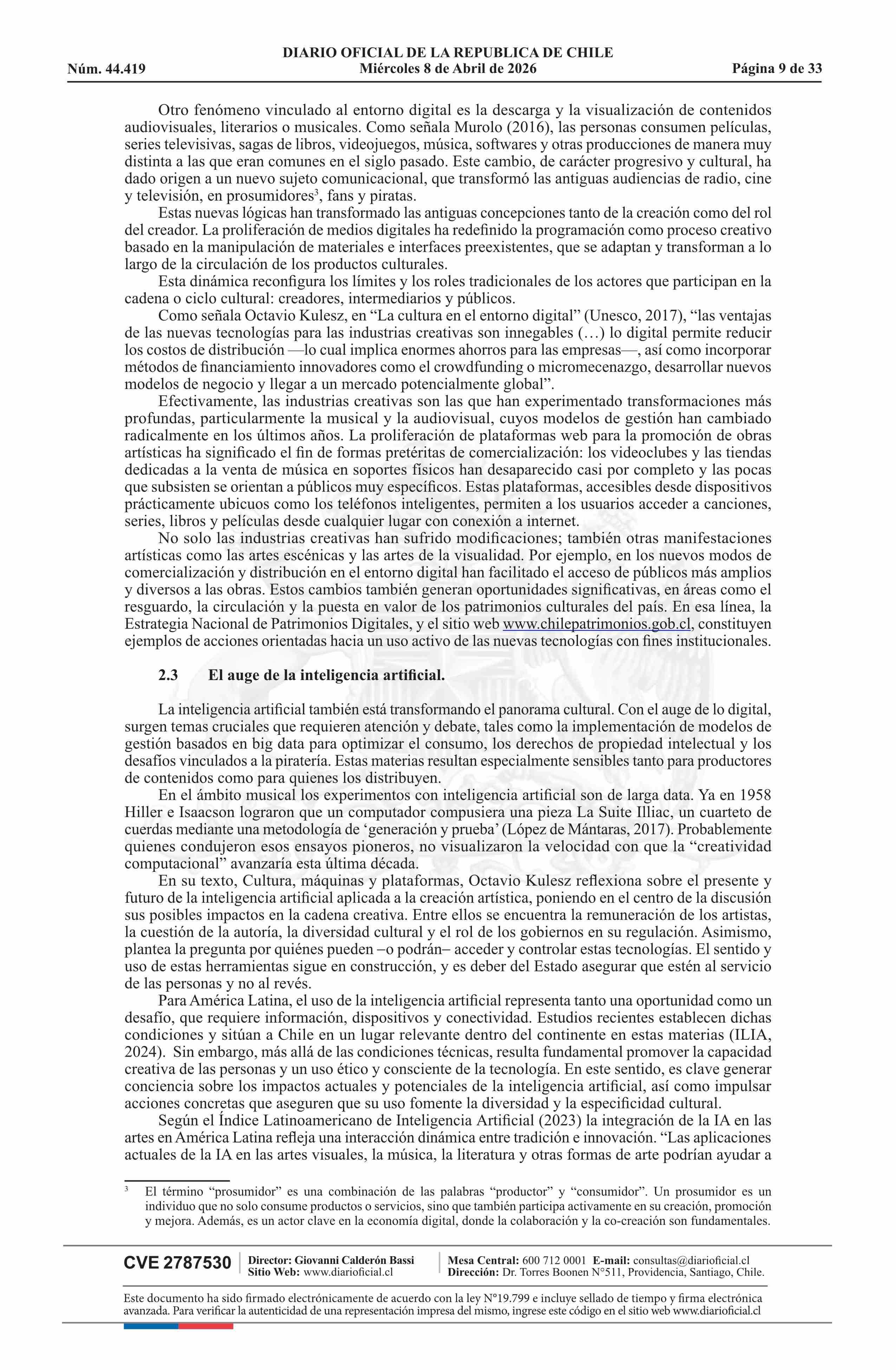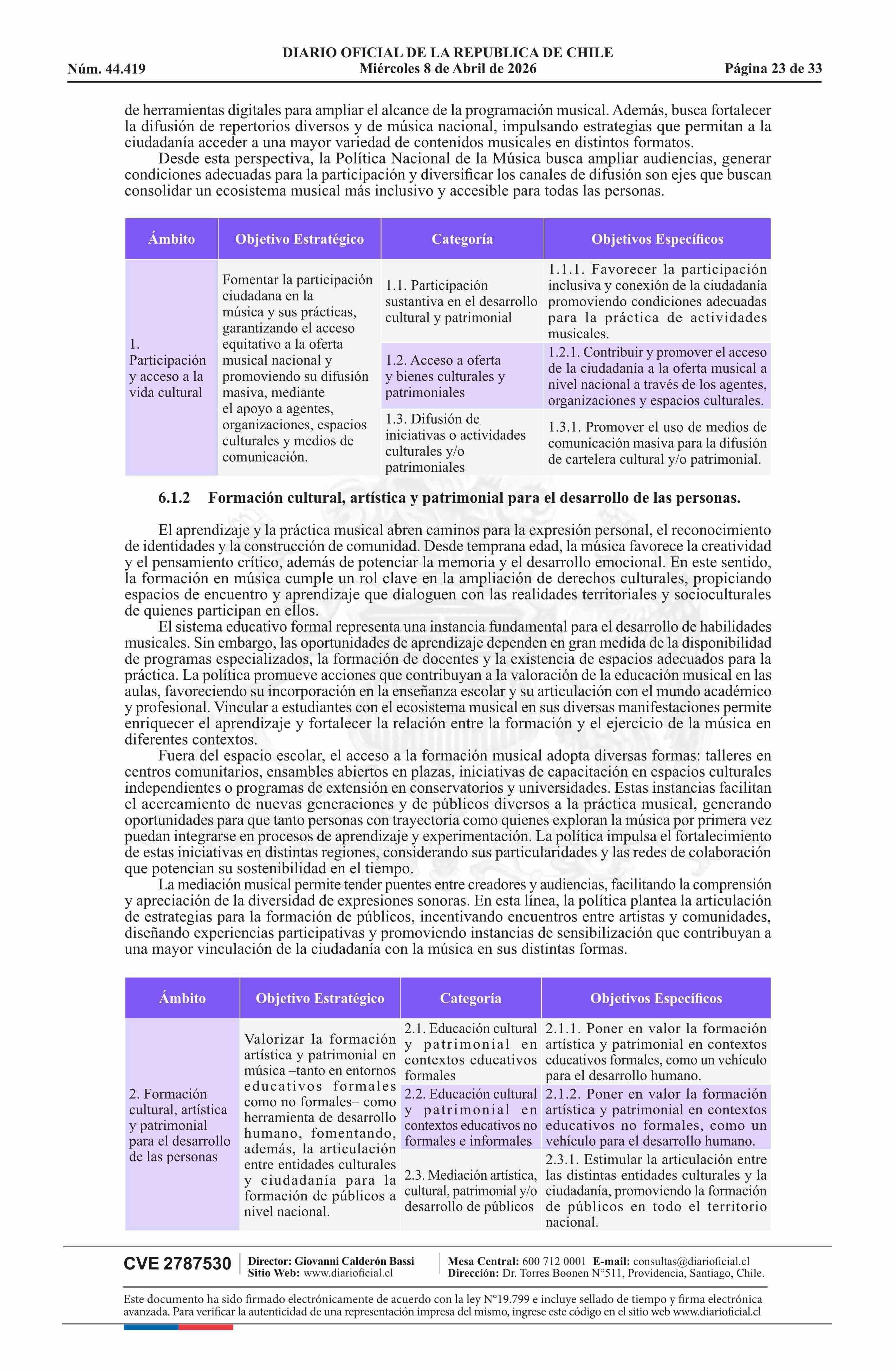 Resolución exenta número 789, de 2026.- Aprueba Política Nacional de Música 2025-2030 08-04-2026 Diario Oficial Edición Electrónica |