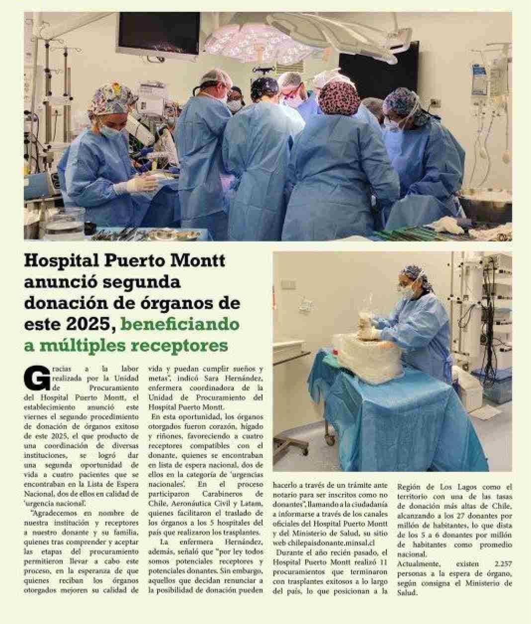 Hospital Puerto Montt anunció segunda donación de órganos de este 2025, beneficiando a múltiples receptores 24-05-2025 El Heraldo Austral |