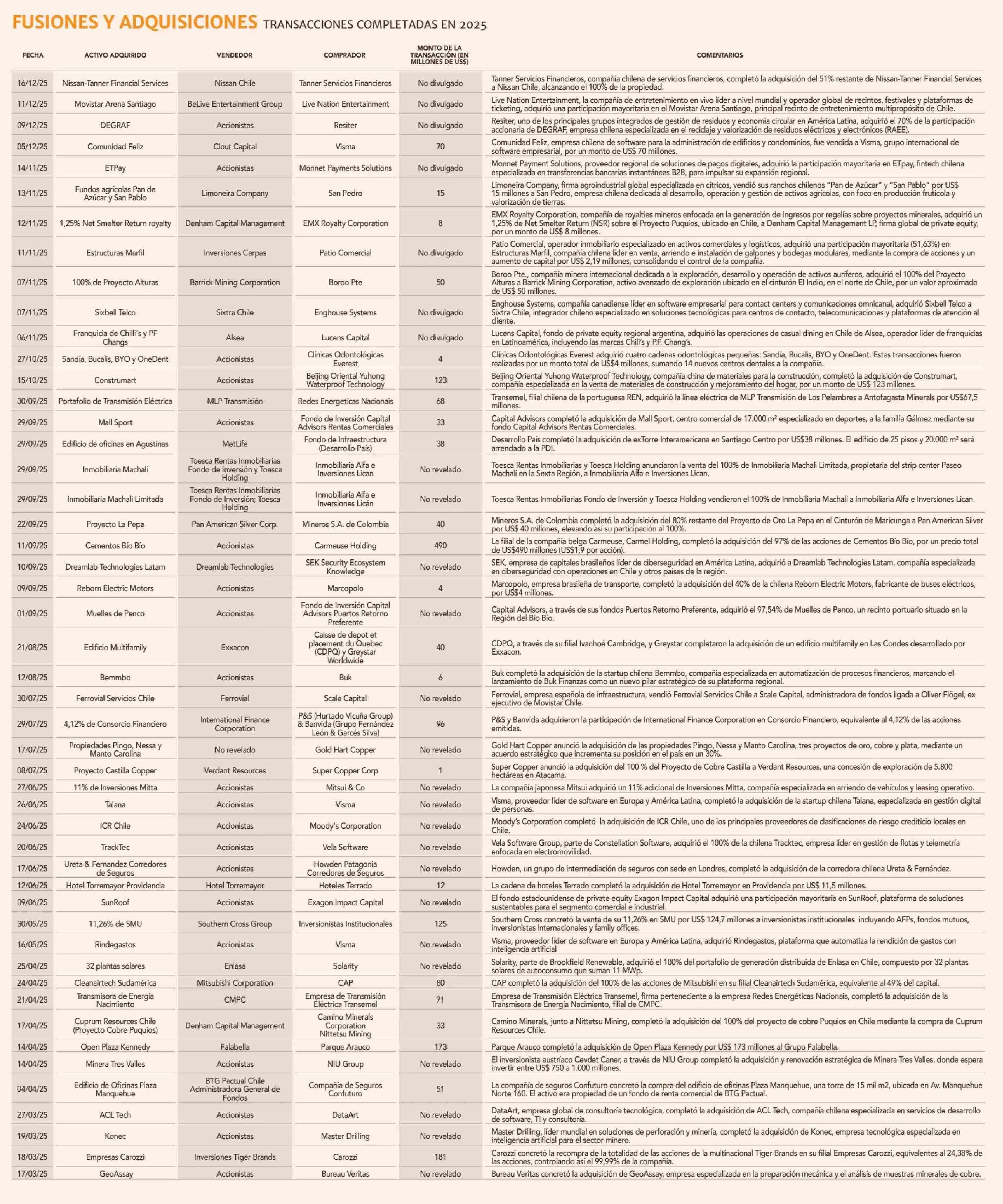 Título: Tecnología, minería e inmobiliario lideraron como los sectores con más M&A en Chile el año 2025