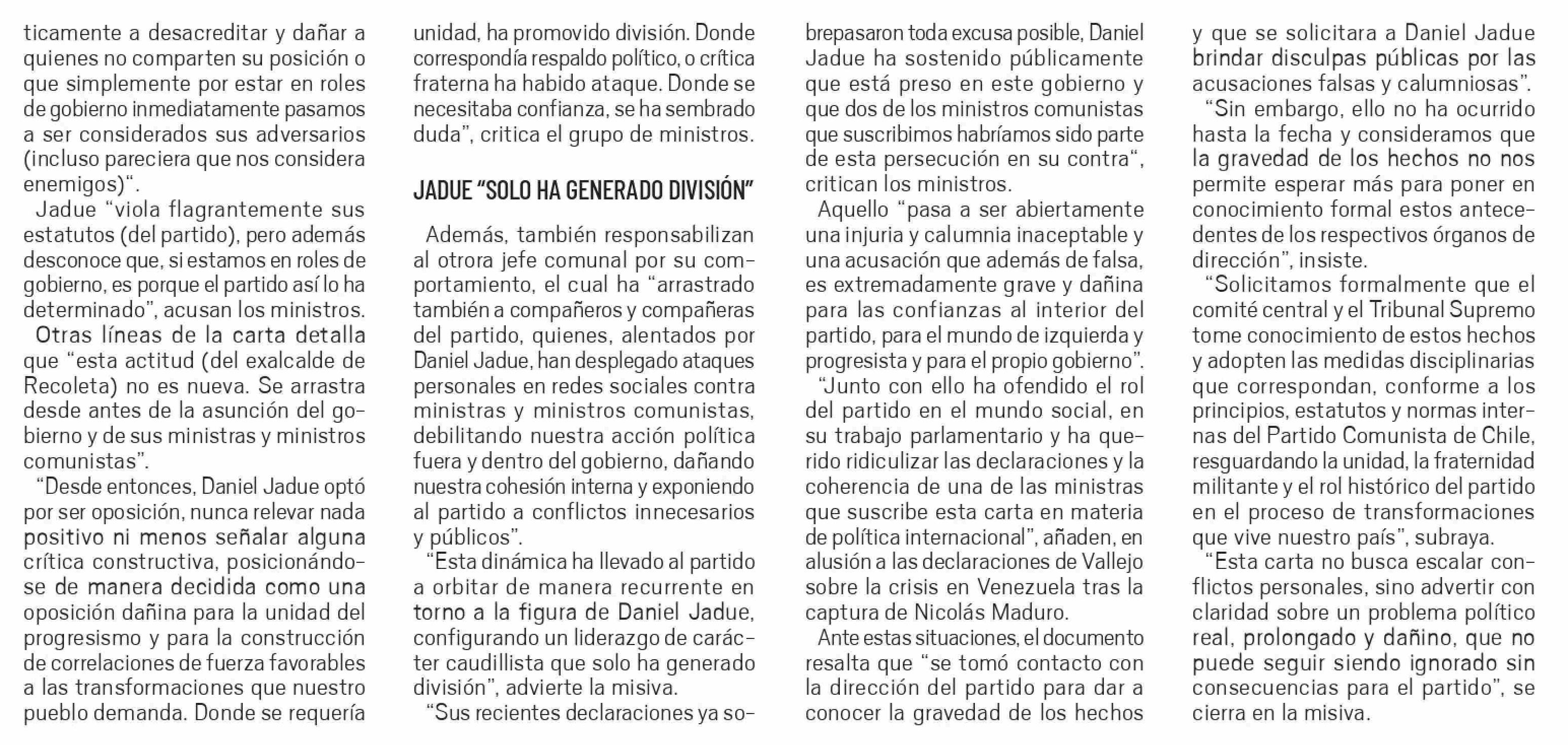 "Solo ha generado división": la carta de ministros PC contra Jadue 16-01-2026 El Día |