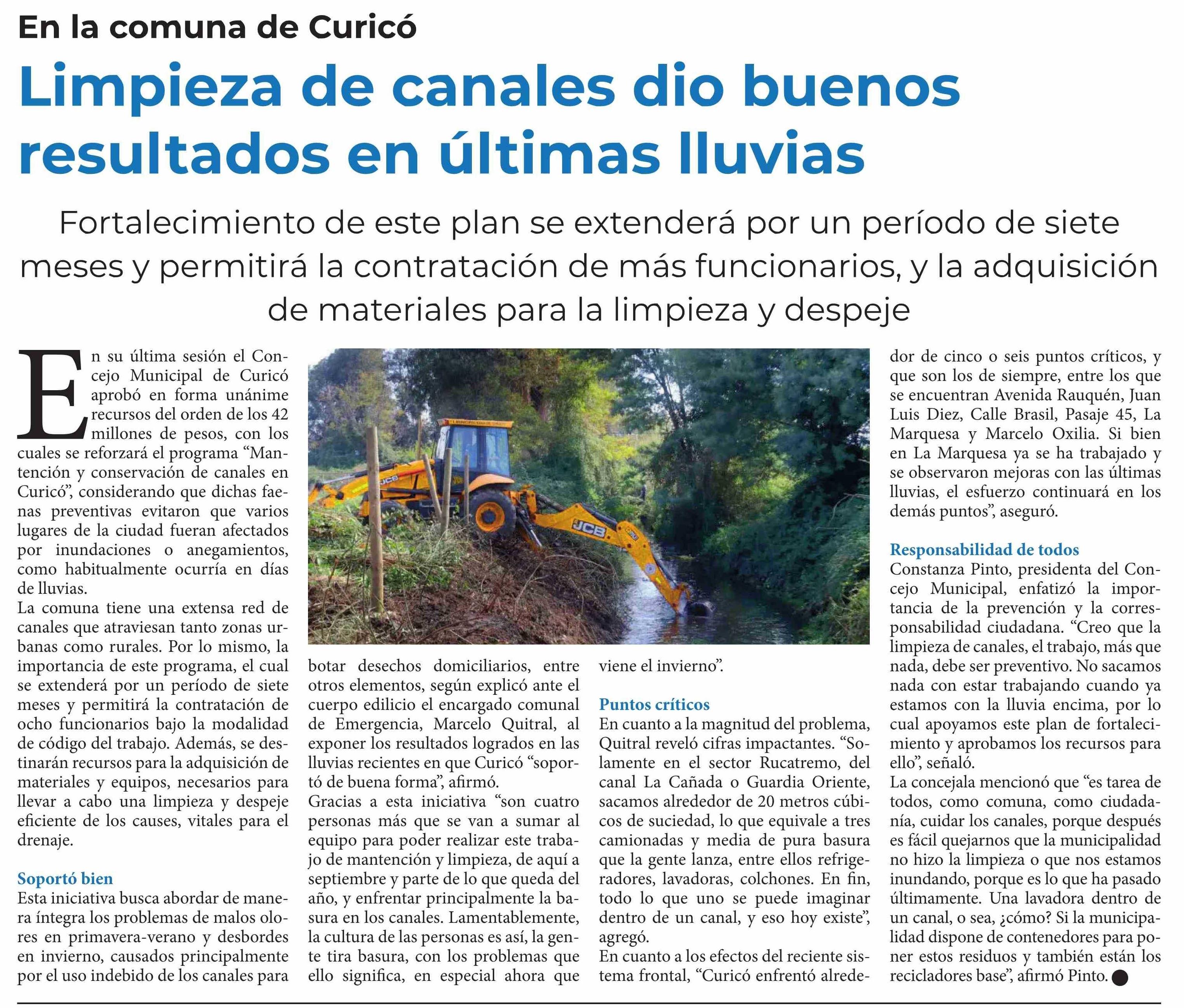 Limpieza de canales dio buenos resultados en últimas lluvias 22-06-2025 Diario Talca |