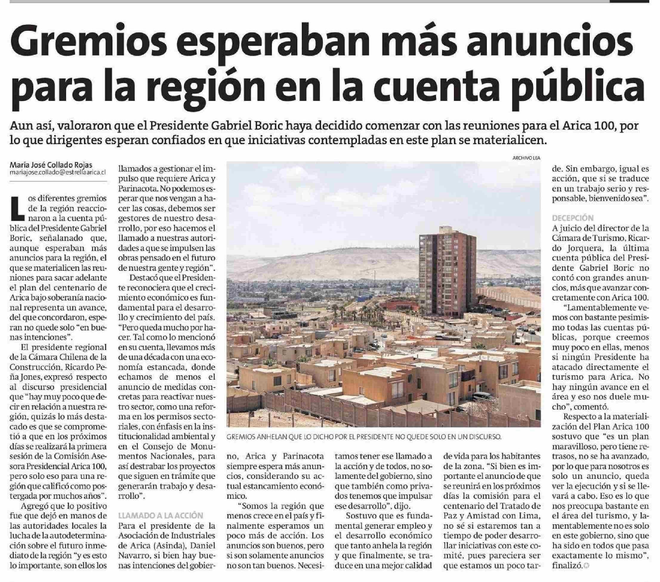 Gremios esperaban más anuncios para la región en la cuenta pública 03-06-2025 La Estrella de Arica |