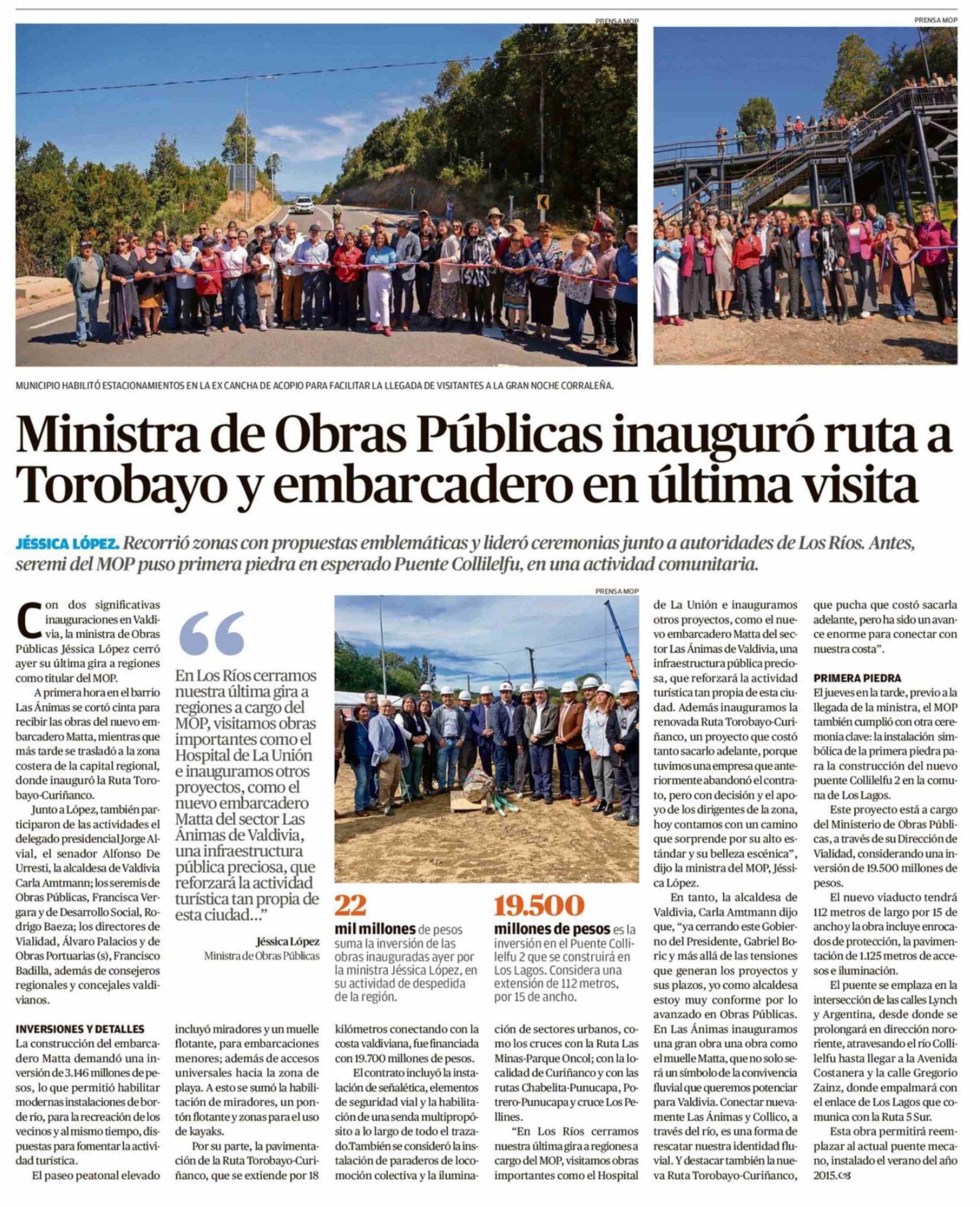 Título: Ministra de Obras Públicas inauguró ruta a Torobayo y embarcadero en última visita