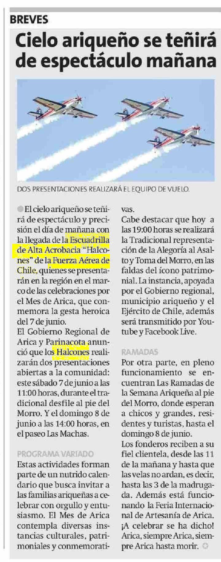 Cielo ariqueño se teñirá de espectáculo mañana 06-06-2025 La Estrella de Arica |