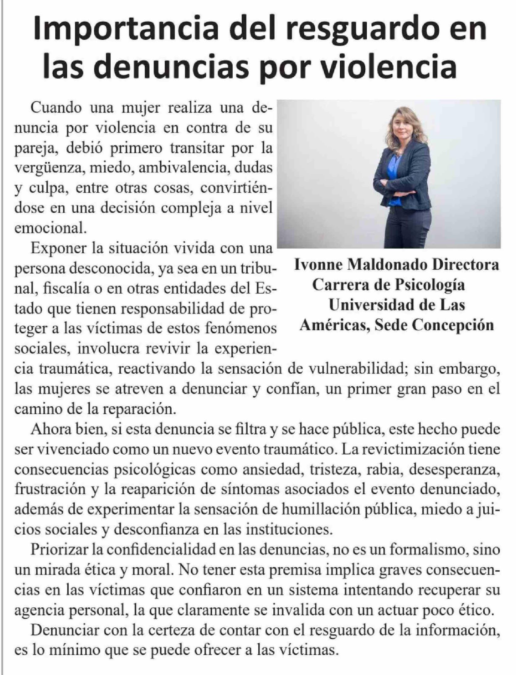 | Título: | Columnas de Opinión: Importancia del resguardo en las denuncias por violencia |