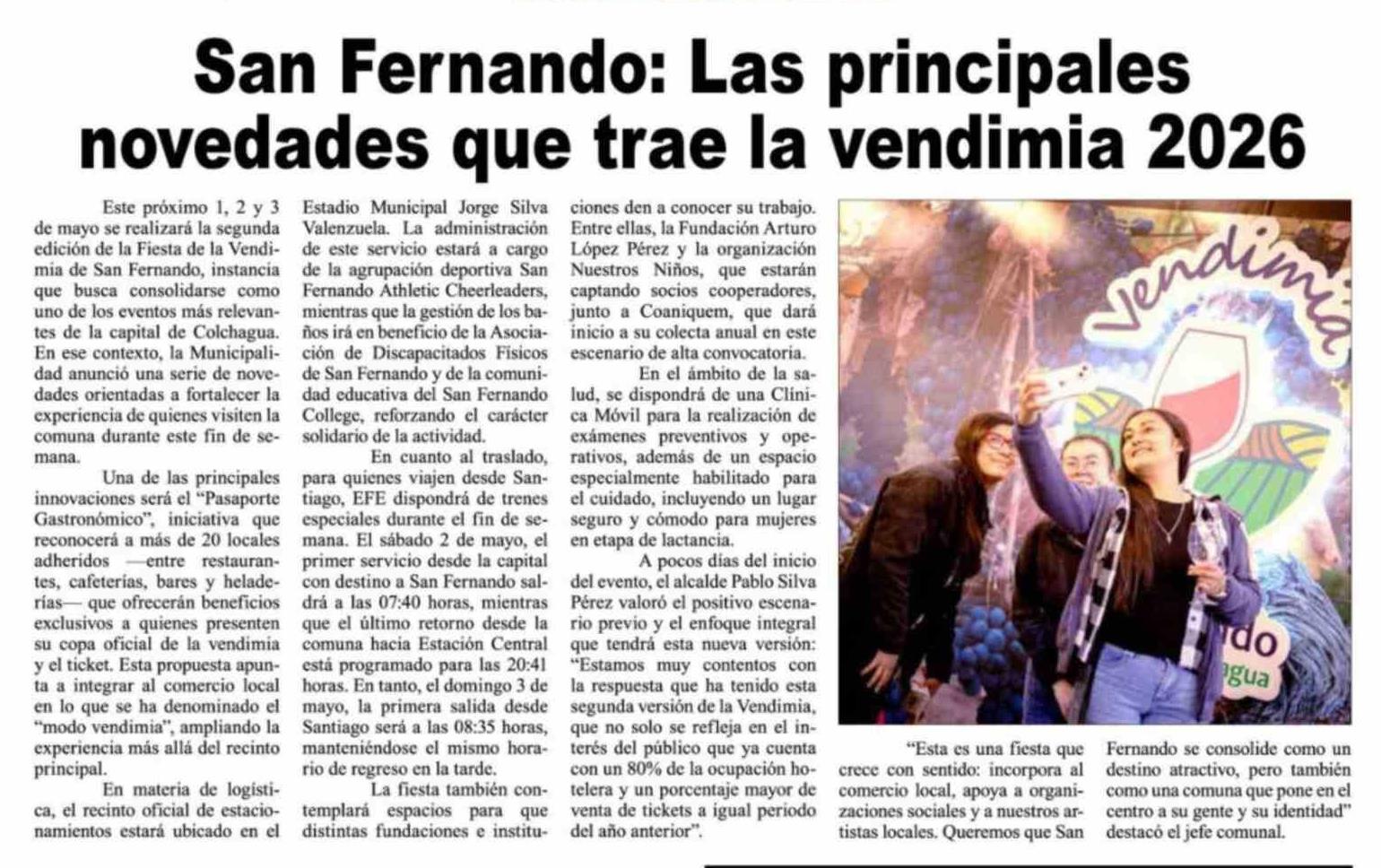 Título: San Fernando: Las principales novedades que trae la vendimia 2026