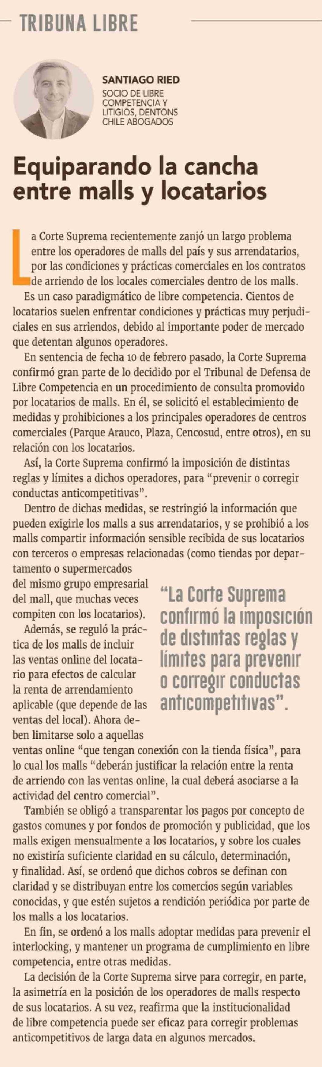 Título: Columnas de Opinión: Equiparando la cancha entre malls y locatarios