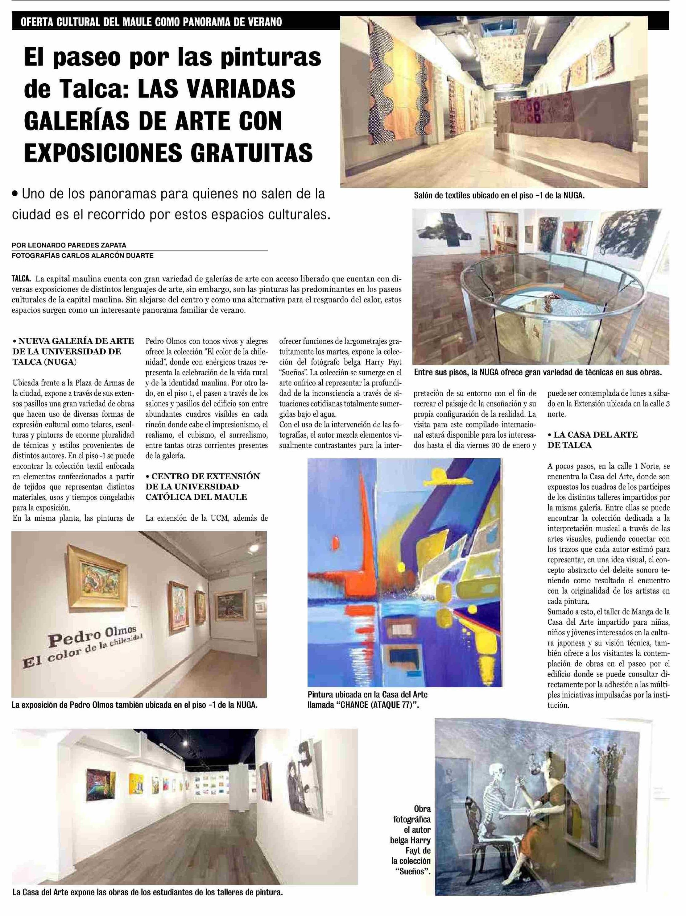 El paseo por las pinturas de Talca: LAS VARIADAS GALERÍAS DE ARTE CON EXPOSICIONES GRATUITAS 14-01-2026 La Prensa de Curicó |