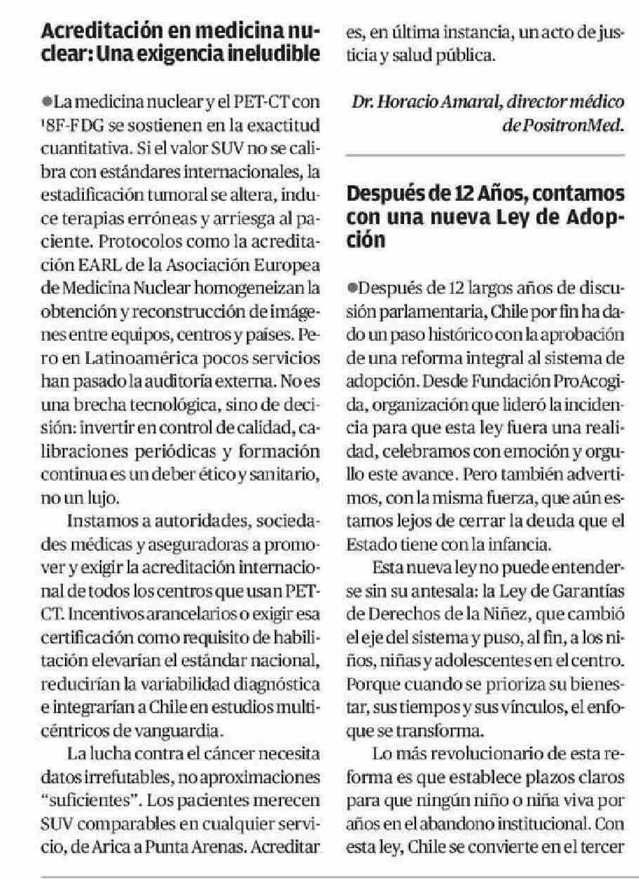 CARTAS: Acreditación en medicina nuclear: Una exigencia ineludible 22-06-2025 El Diario de Atacama |
