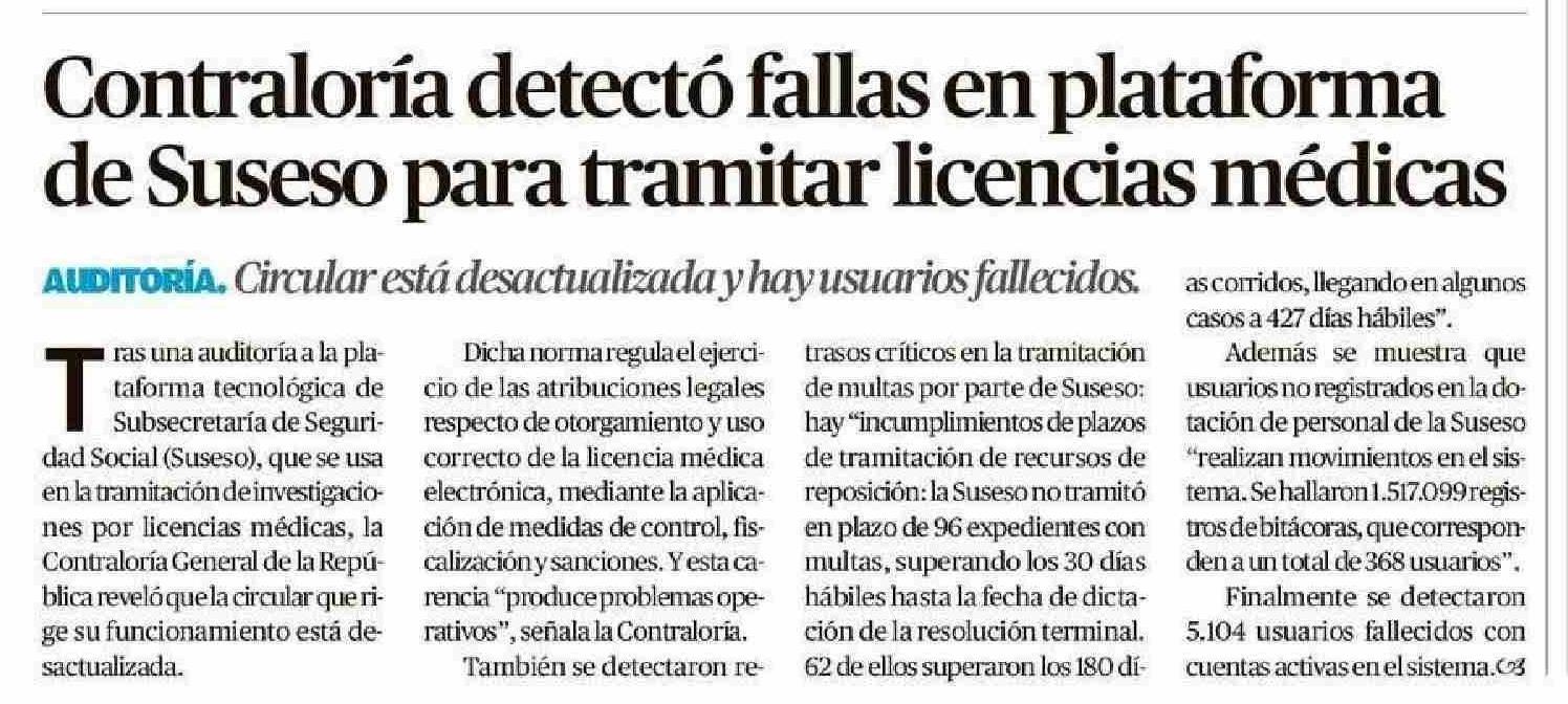 | Título: | Contraloría detectó fallas en plataforma de Suseso para tramitar licencias médicas |