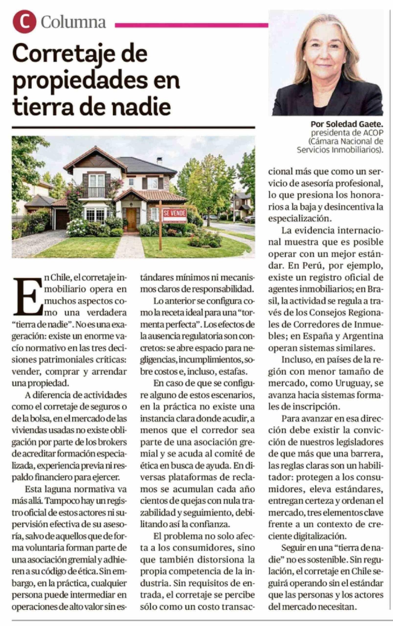 Columnas de Opinión: Corretaje de propiedades en tierra de nadie 05-04-2026 Crónica de Chillán |