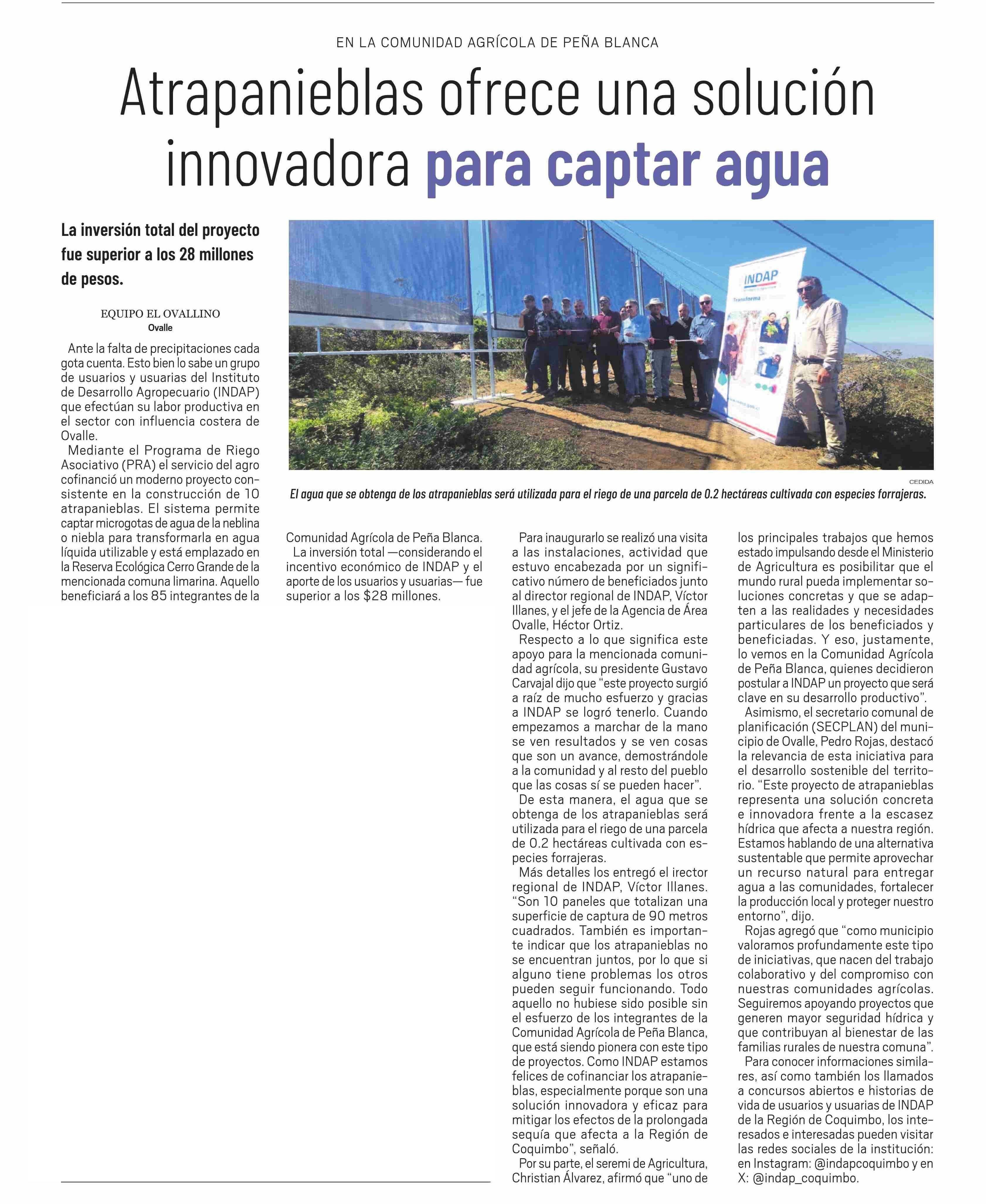 Atrapanieblas ofrece una solución innovadora para captar agua 14-02-2026 El Ovallino |