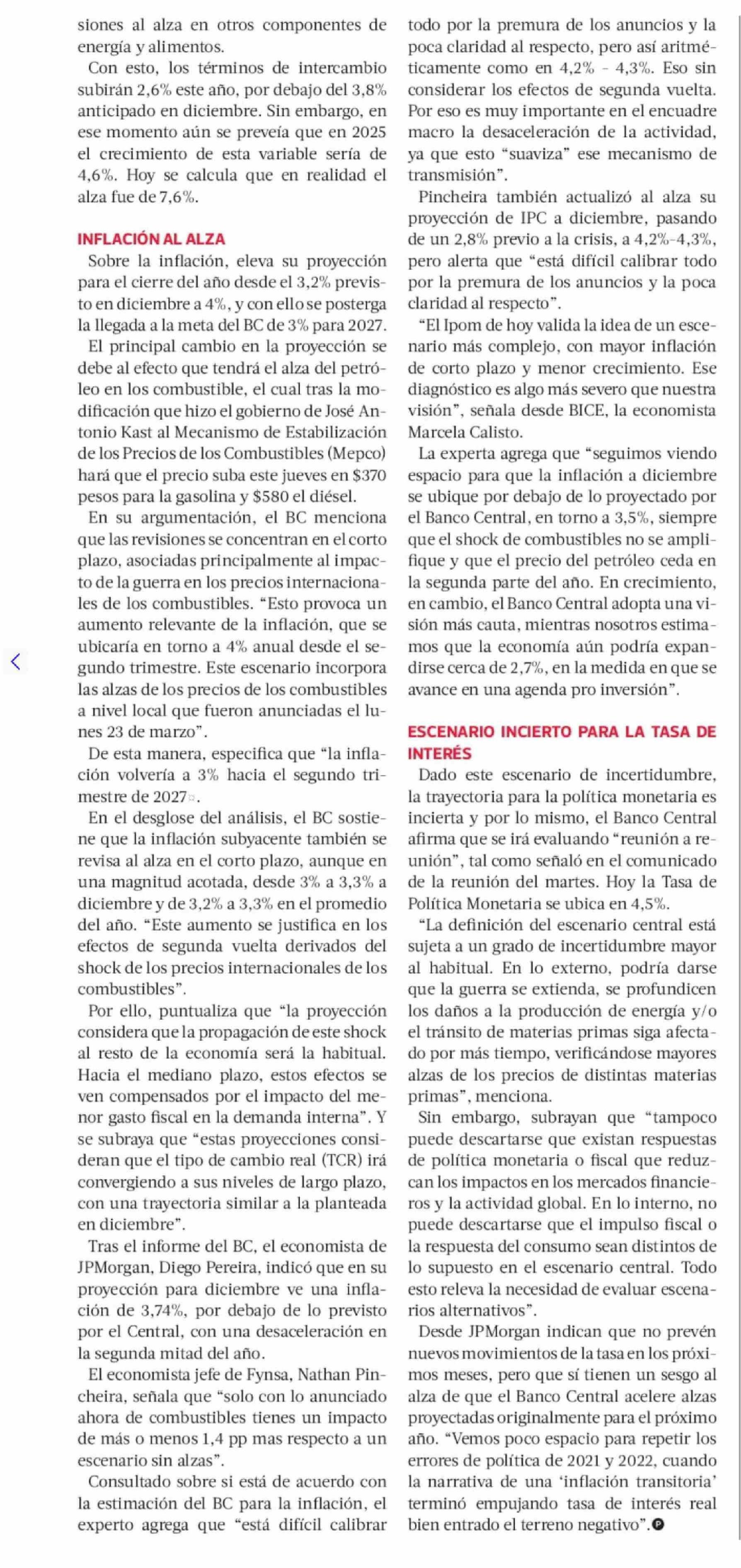 Título: Impacto de guerra en Irán: Banco Central recorta estimación de PIB y sube la de inflación para 2026