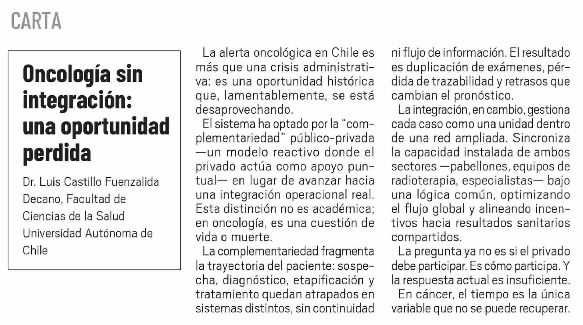 Título: Cartas: Oncología sin integración: una oportunidad perdida