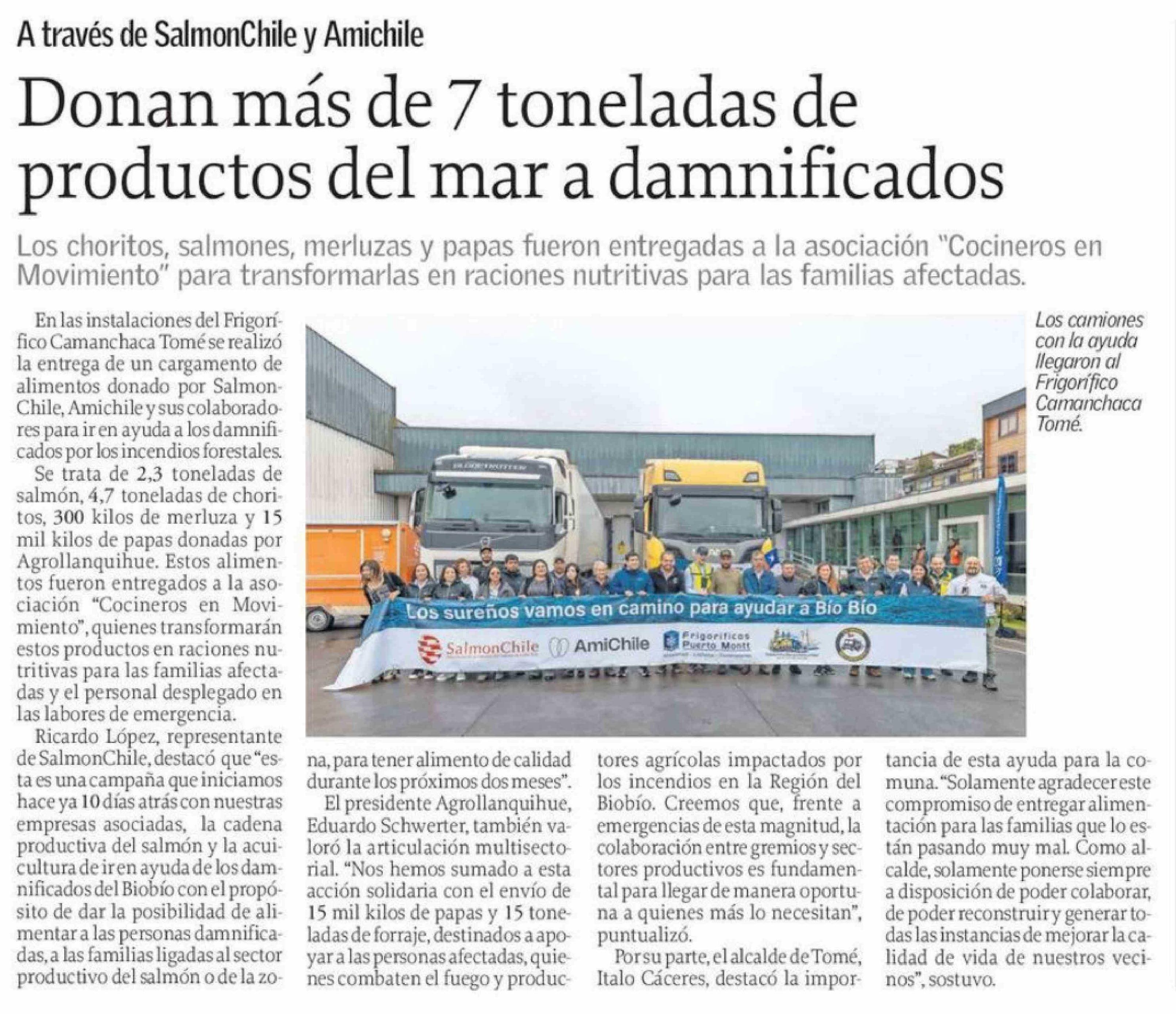 Título: Donan más de 7 toneladas de productos del mar a damnificados