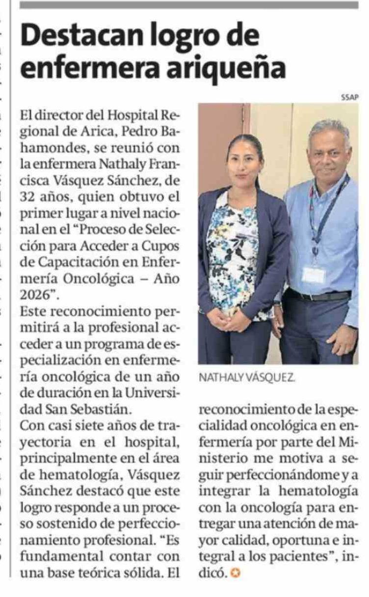 Título: Destacan logro de enfermera ariqueña