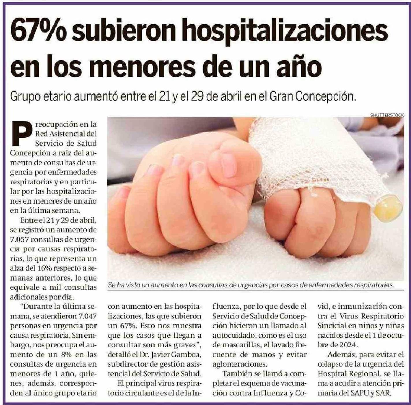 Título: 67% Subieron hospitalizaciones en los menores de un año