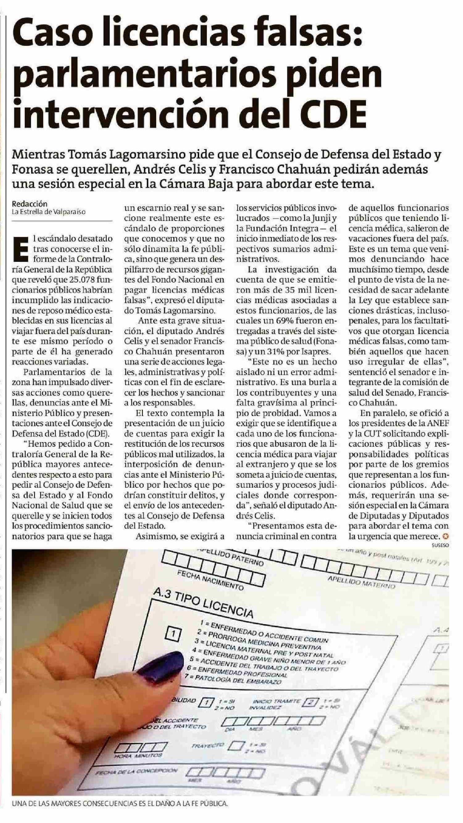 Caso licencias falsas: parlamentarios piden intervención del CDE 22-05-2025 La Estrella de Valparaíso |