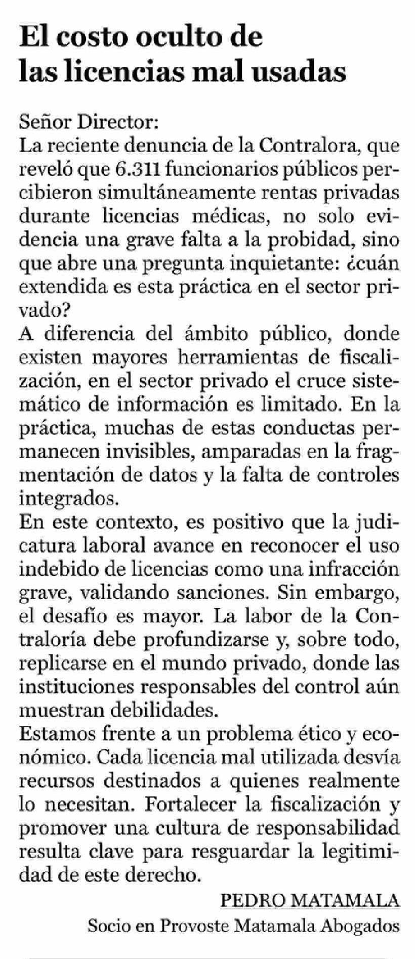 Cartas: El costo oculto de las licencias mal usadas 07-04-2026 La Prensa de Curicó |