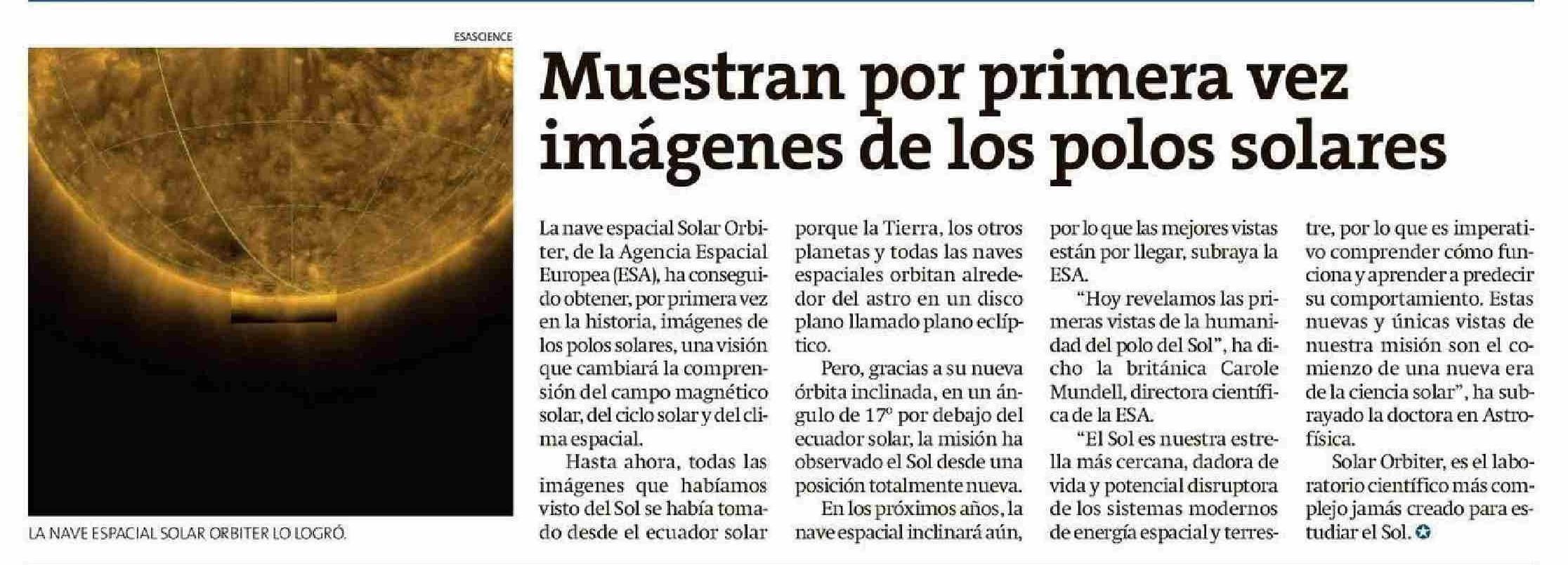 | Título: | Muestran por primera vez imágenes de los polos solares |