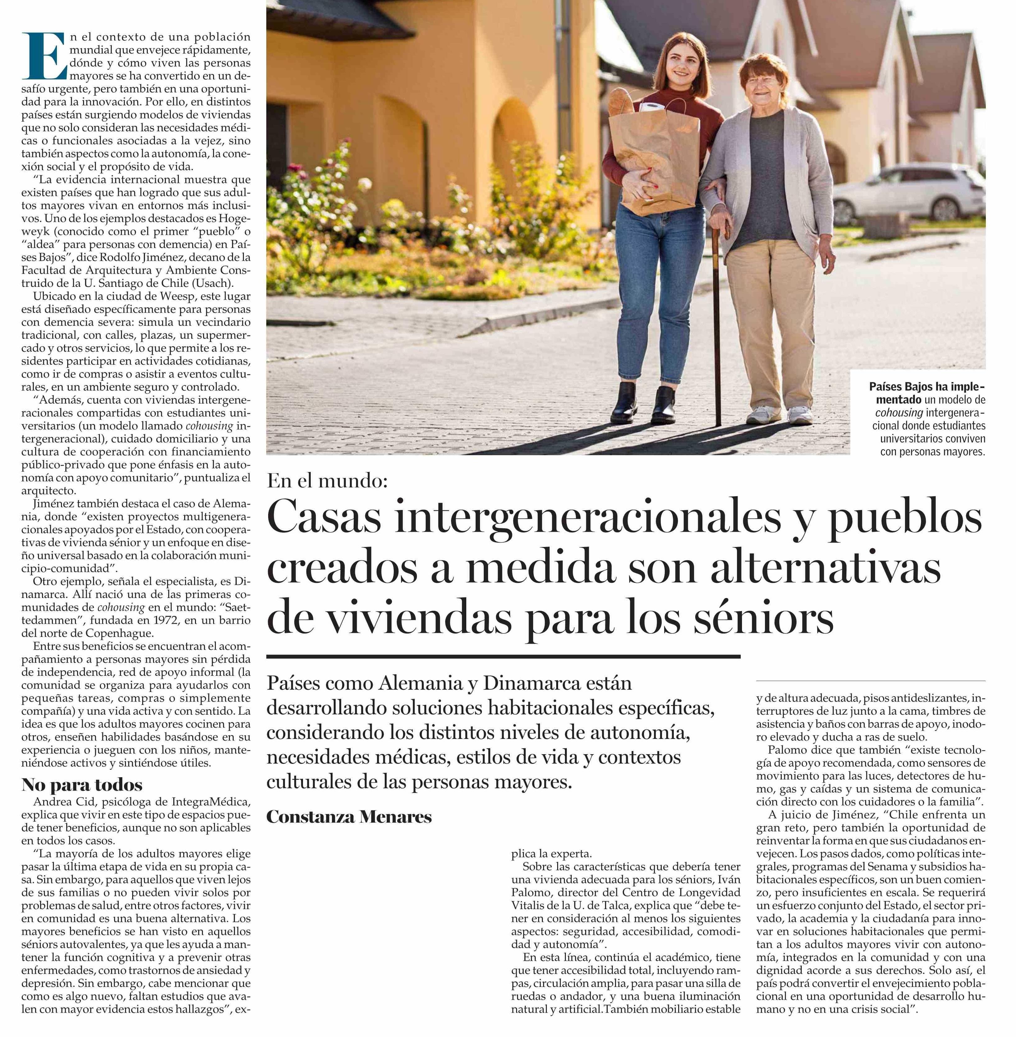 Casas intergeneracionales y pos ercados a medida son alternativa de viviendas para los séniors 19-05-2025 El Mercurio |