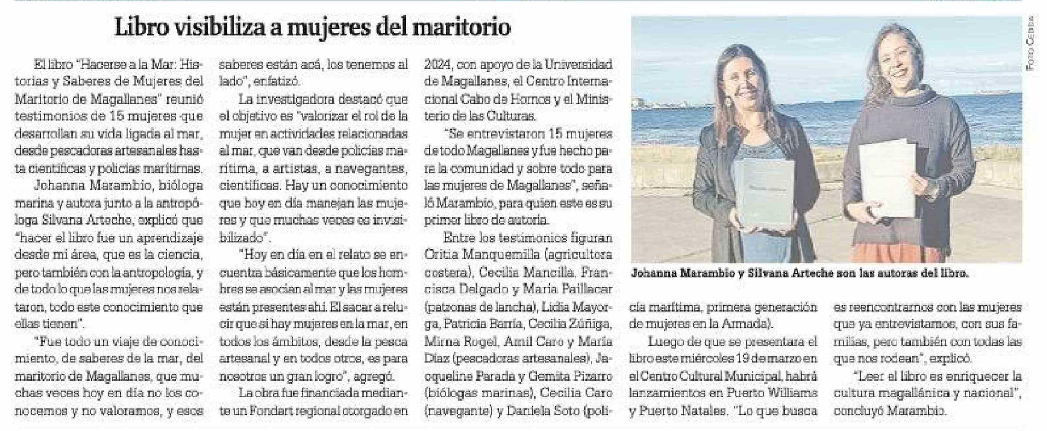 Libro visibiliza a mujeres del maritorio 21-03-2026 La Prensa Austral |