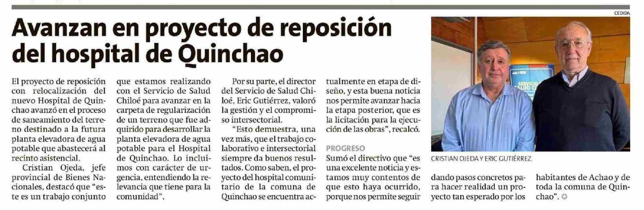 | Título: | Avanzan en proyecto de reposición del hospital de Quinchao |