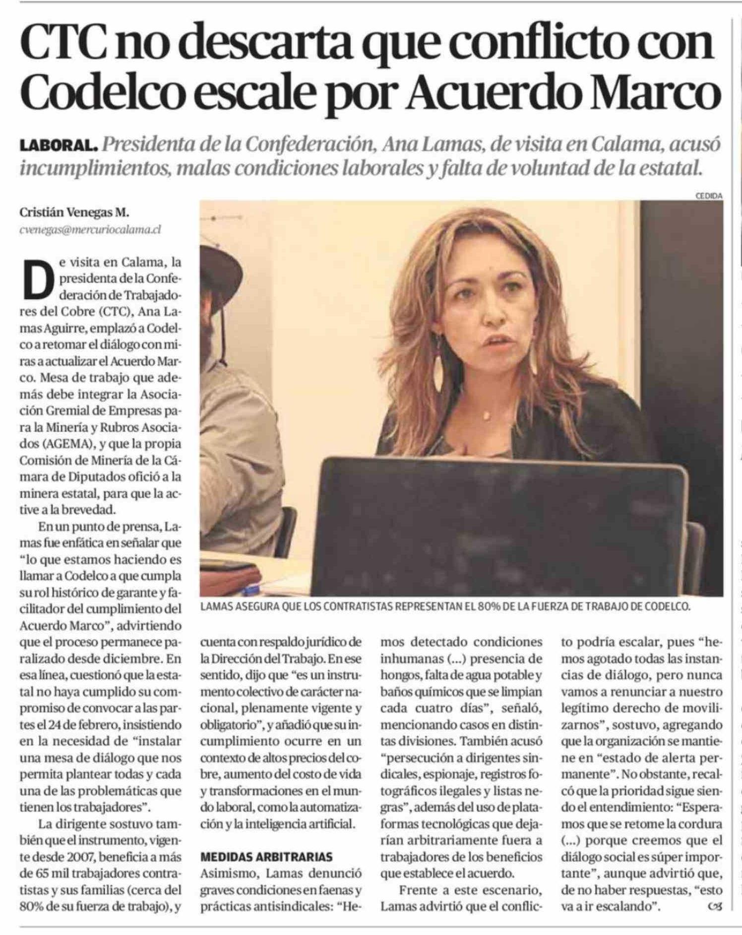 Título: CTC no descarta que conflicto con Codelco escale por Acuerdo Marco