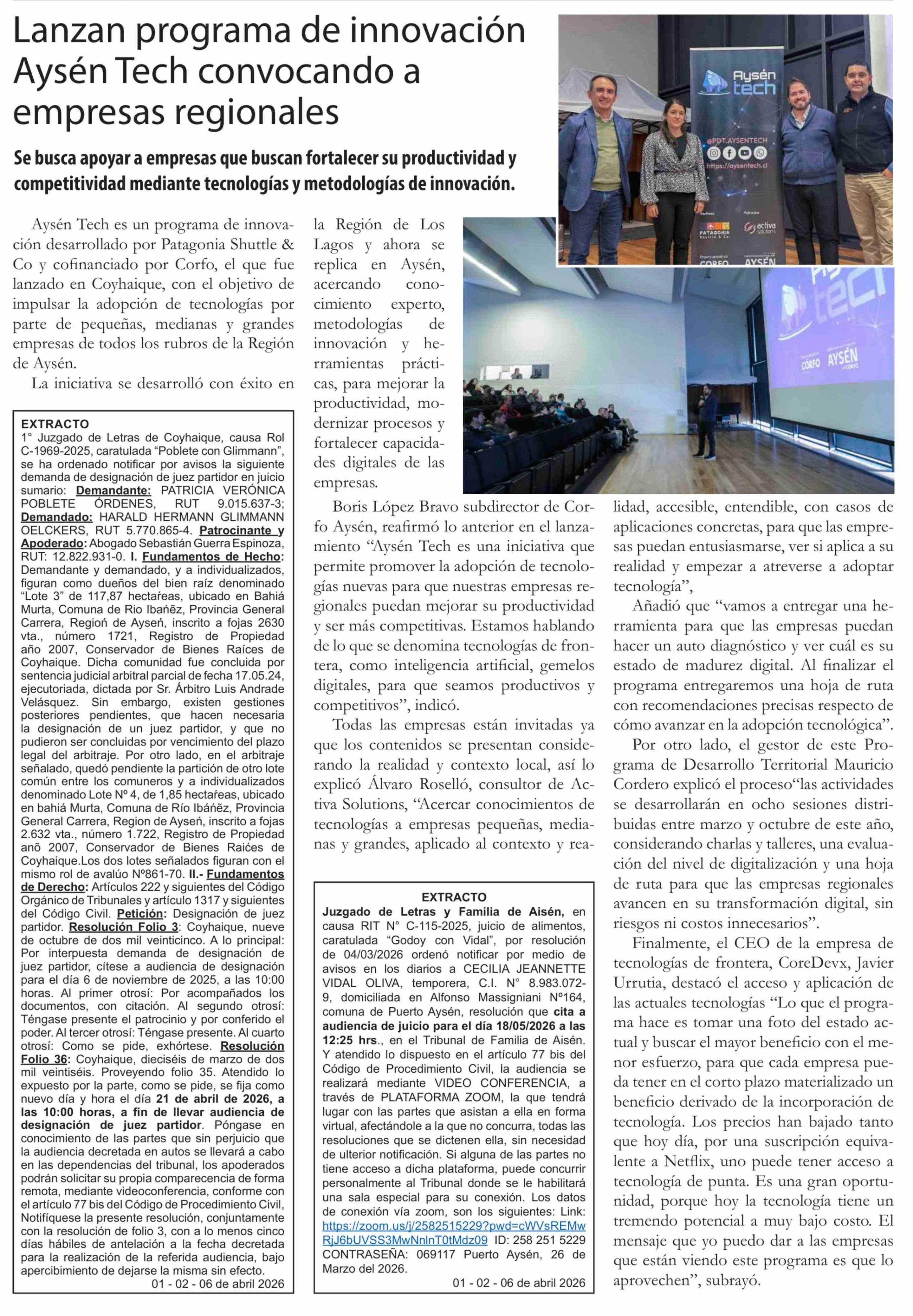 Fecha: 01-04-2026 Sector: Noticia general Región: Región Aysén del General Carlos Ibáñez del Campo