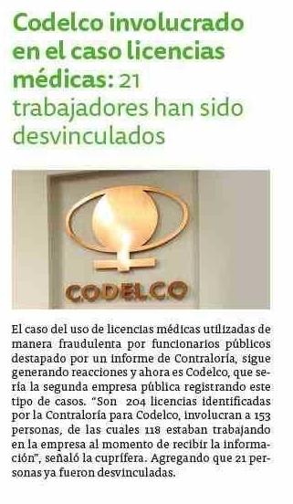 Título: Codelco involucrado en el caso licencias médicas: 21 trabajadores han sido desvinculados