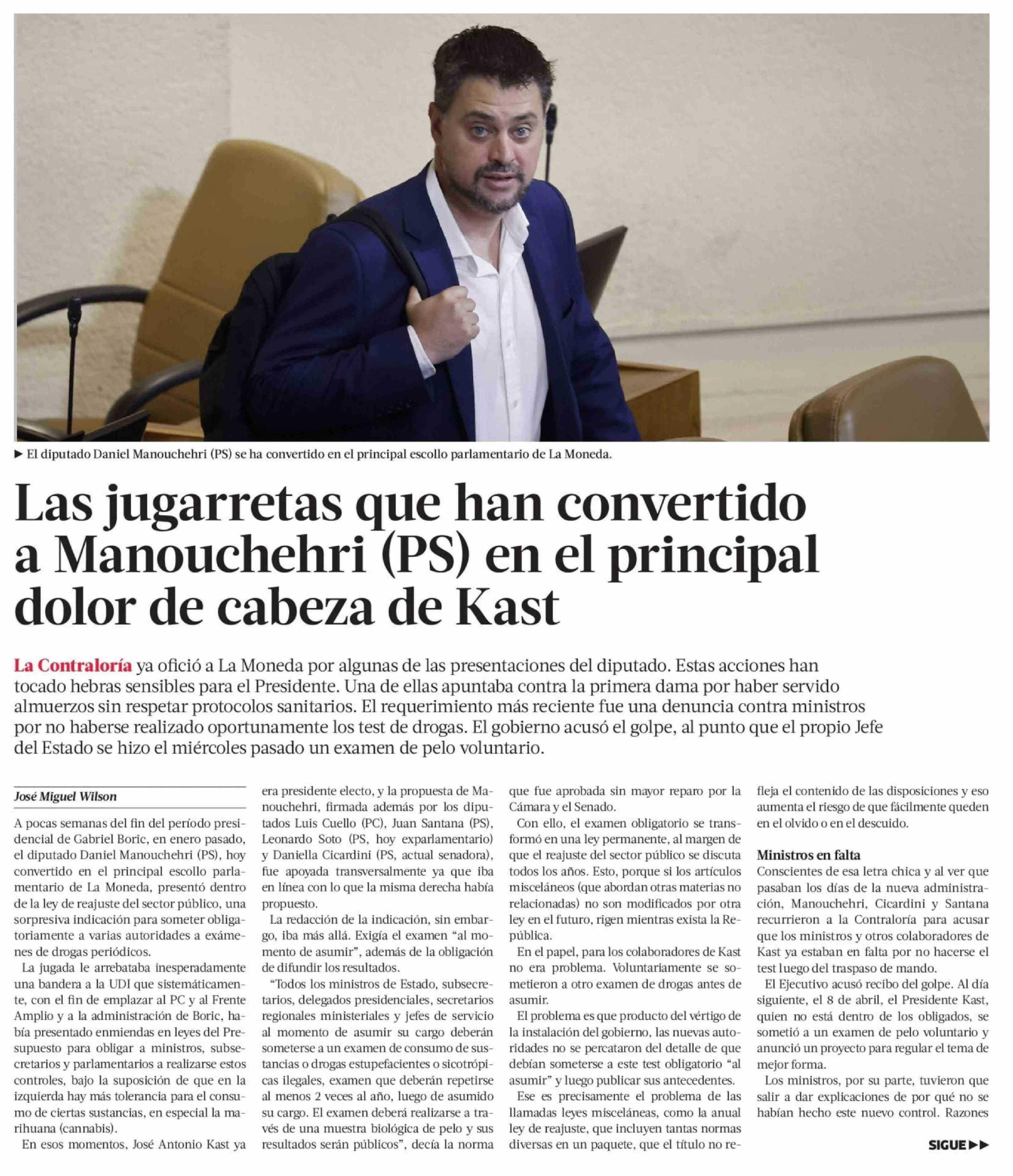Las jugarretas que han convertido a Manouchehri (PS) en el principal dolor de cabeza de Kast 13-04-2026 La Tercera |