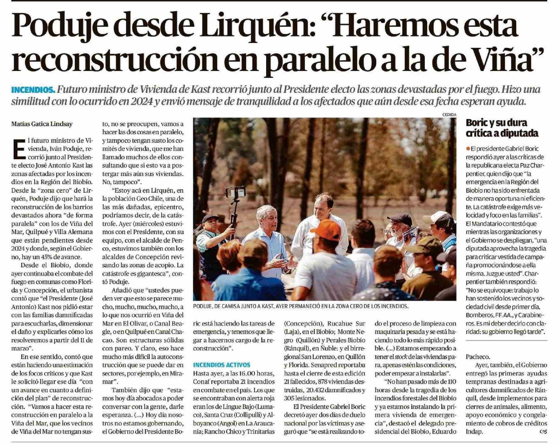 Título: Poduje desde Lirquén: "Haremos esta reconstrucción en paralelo a la de Viña"